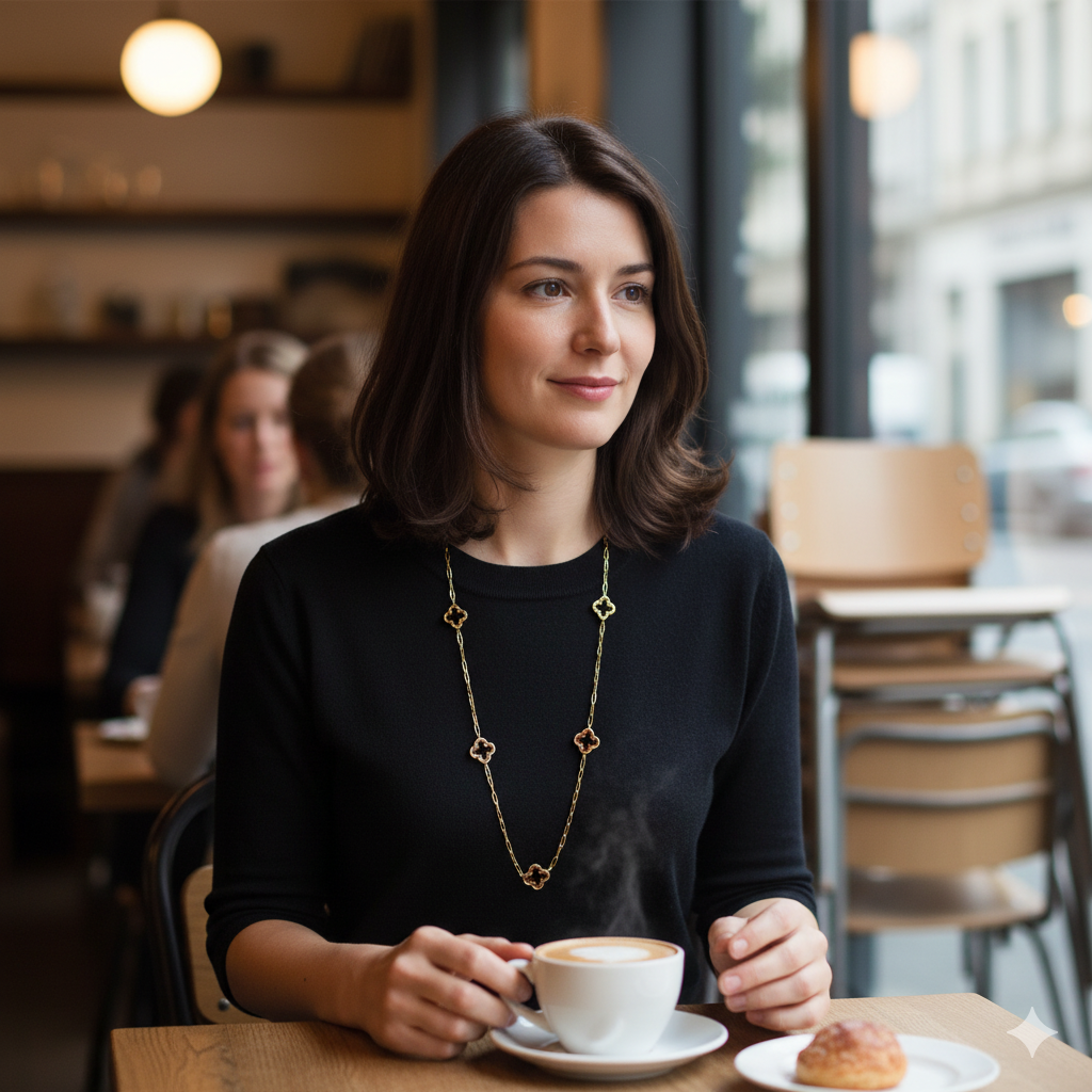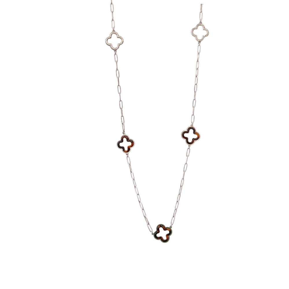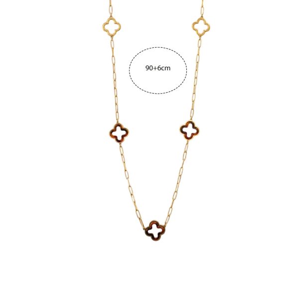 Κομψό και διαχρονικό μακρύ κολιέ από ατσάλι, διακοσμημένο με κομψά τετράφυλλα στοιχεία σε γυαλιστερή επιφάνεια. Ιδανικό για να φορεθεί μόνο του ή σε layering, προσθέτοντας μια πινελιά πολυτέλειας σε κάθε εμφάνιση.Κατασκευασμένο από ανθεκτικό ατσάλι που δεν μαυρίζει, διατηρεί τη λάμψη και το στυλ του για χρόνια. Ταιριάζει υπέροχα με casual αλλά και πιο elegant outfit.
