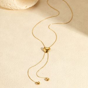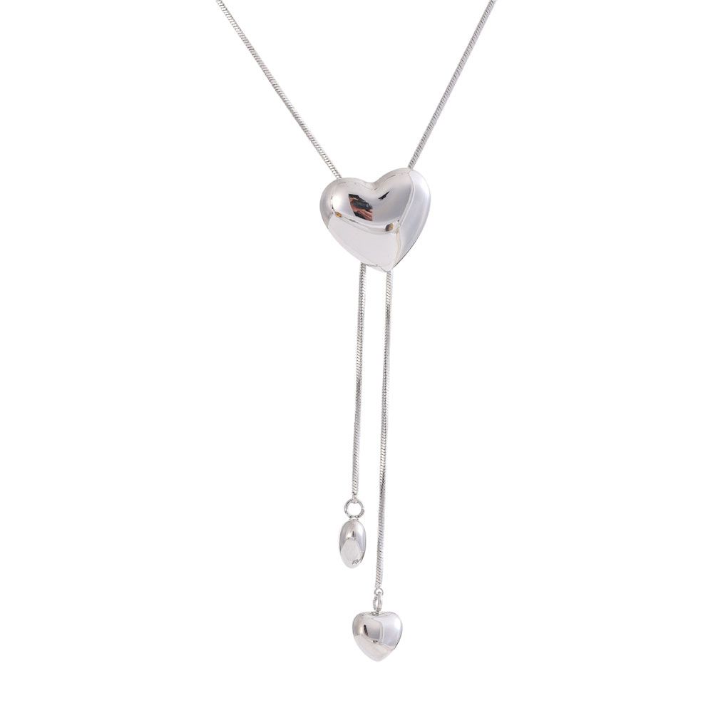 Κομψό και μοντέρνο ατσάλινο κολιέ με ρυθμιζόμενο σχέδιο και γυαλιστερές καρδιές. Το κεντρικό στοιχείο-καρδιά λειτουργεί ως μηχανισμός ρύθμισης, επιτρέποντάς σου να προσαρμόζεις το μήκος ανάλογα με το ντεκολτέ ή το outfit σου.Από ανθεκτικό ατσάλι που δεν μαυρίζει, αποτελεί μια διαχρονική επιλογή που συνδυάζει ρομαντισμό και κομψότητα, ιδανική για κάθε περίσταση.