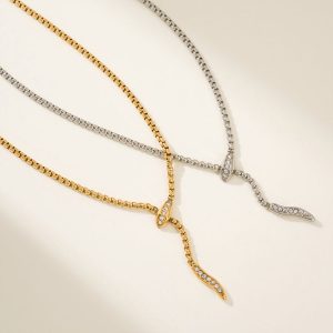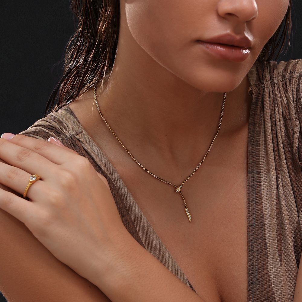 Ατσάλινο Κολιέ με Σχέδιο Φίδι και Ζιργκόν – Χρυσό