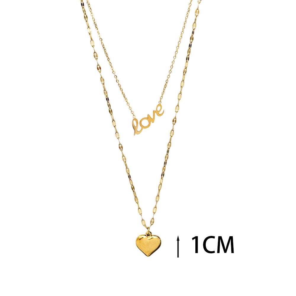 Ατσάλινο Κολιέ Με Καρδιά Και “Love” – Χρυσό