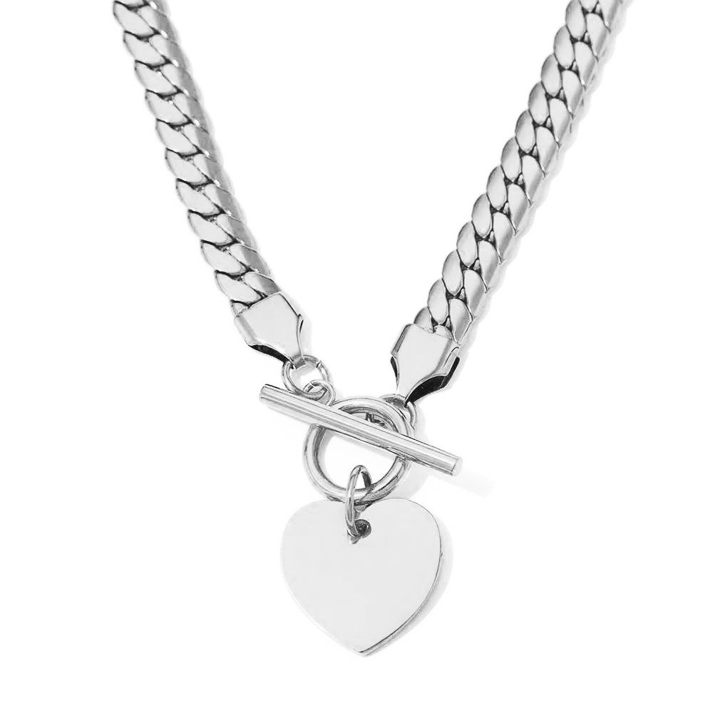 • Ατσάλινο Κολιέ Με Καρδιά - ΑσημίA3388