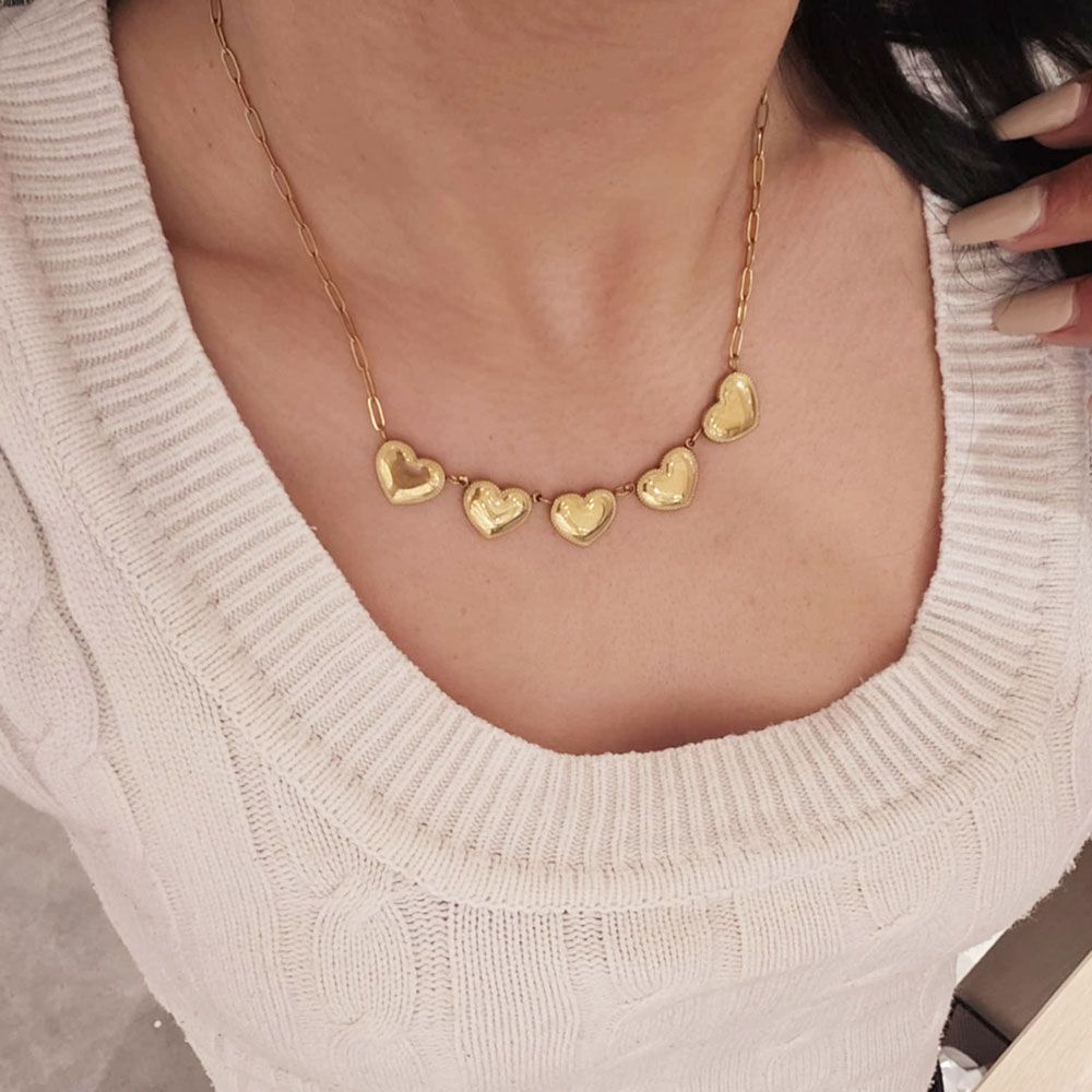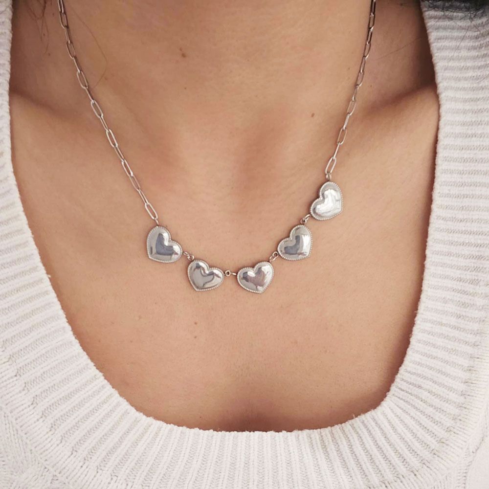 Κολιέ Απο Ανοξείδωτο Ατσάλι Με Καρδιές – Ασημί