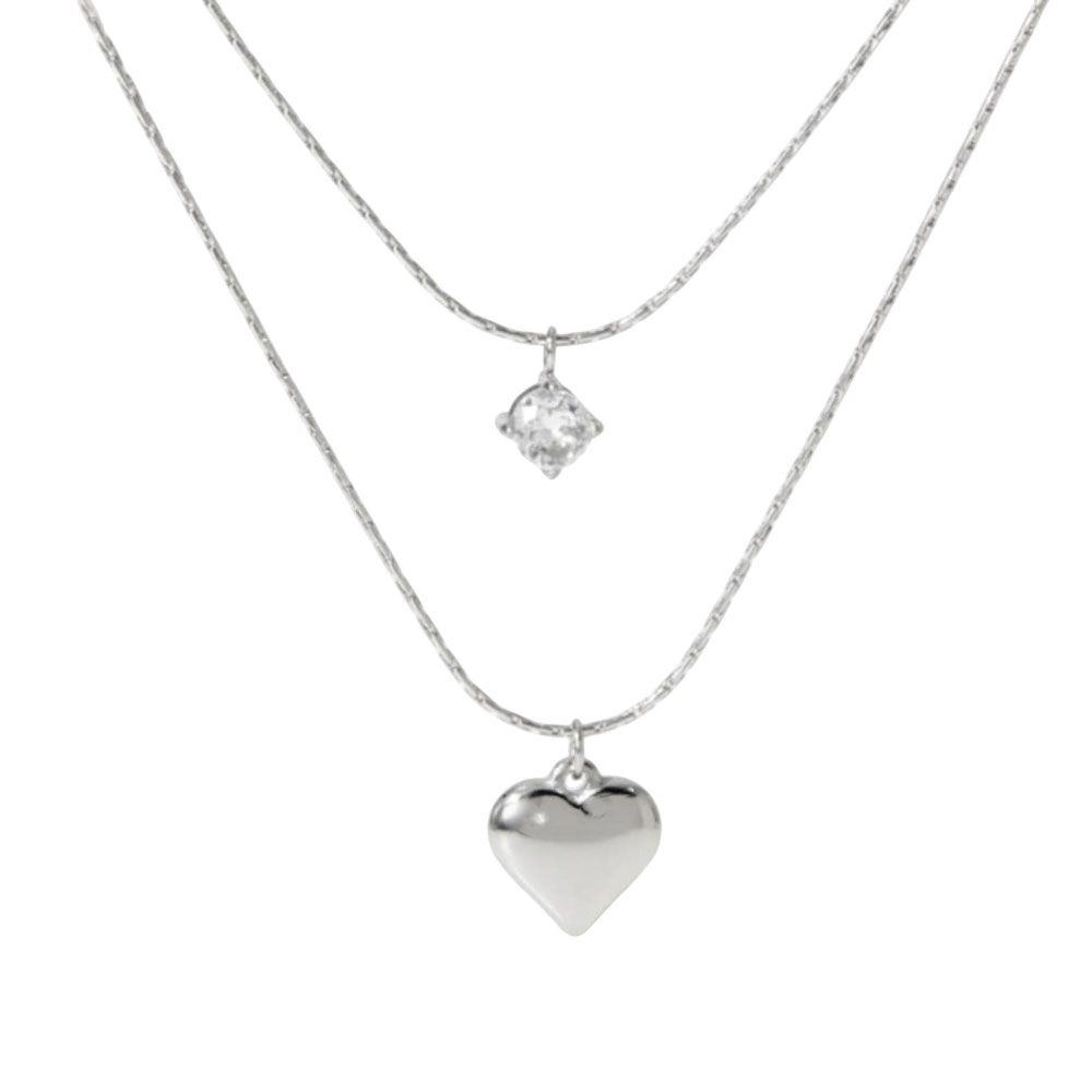 Γυναικείο Κολιέ Ατσάλινο Με Διπλή Αλυσίδα Καρδιά Και Μονόπετρο Ζιργκόν .Διαθέτει αυξομείωση και μπορείτε να το προσαρμόσετε στο ύψος που επιθυμείτε.   Μήκος Αλυσίδας: 41.5cm Προέκταση: 5.2εκ. Κρεμαστό: 1.2cm Υλικό: Ατσάλι