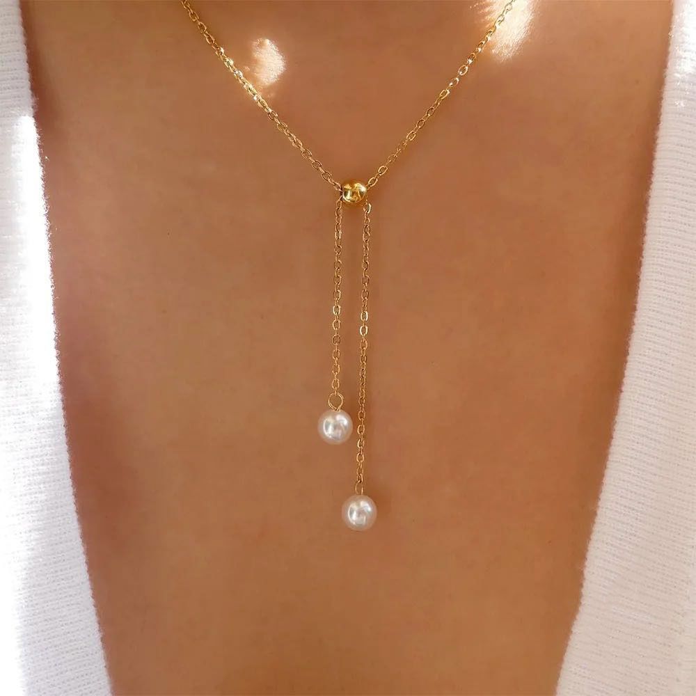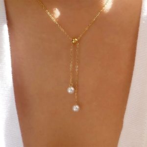 Ατσάλινο Κολιέ Με Πέρλα – Χρυσό