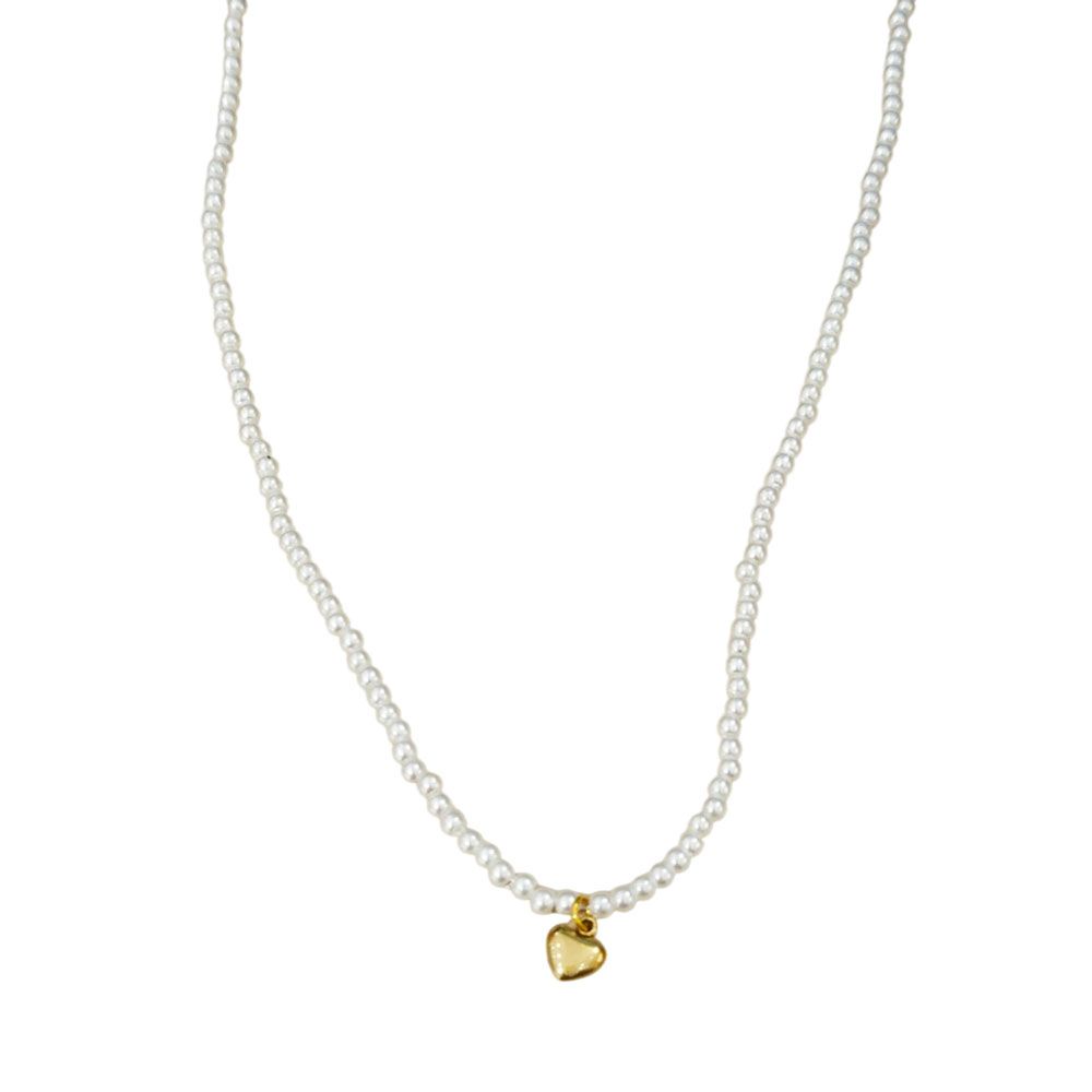 Ατσάλινο Κολιέ Με Πέρλα Kαι Κρεμαστή Καρδιά