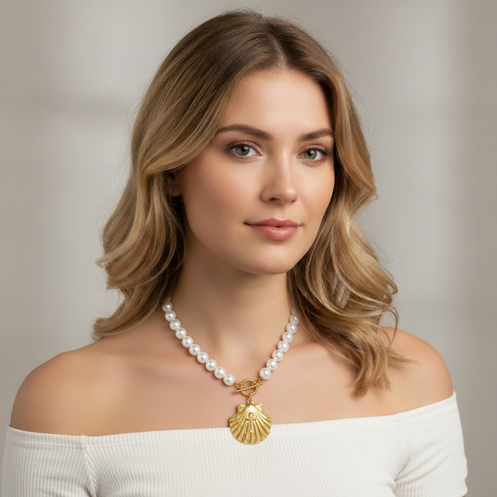 Choker από Ατσάλι με Πέρλες & Κρεμαστό Κοχύλι – Χρυσό