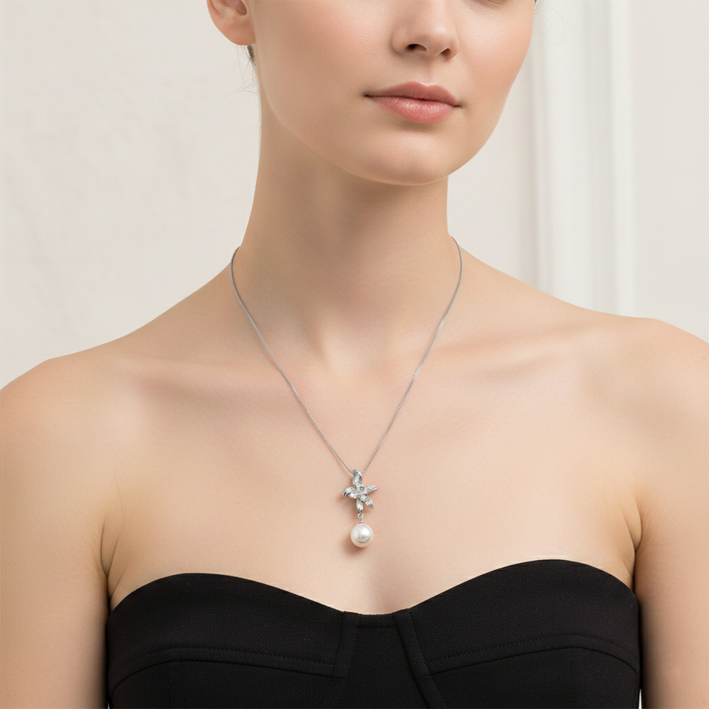 Κομψό και ρομαντικό κολιέ από ατσάλι σε χρυσό τόνο, με λεπτή αλυσίδα και εντυπωσιακό μενταγιόν σε σχήμα λουλουδιού. Από το λουλούδι κρέμεται μια λαμπερή λευκή πέρλα, δημιουργώντας έναν όμορφο συνδυασμό φυσικής κομψότητας και θηλυκής λεπτομέρειας. Ανθεκτικό, αντιαλλεργικό και ιδανικό για καθημερινές αλλά και πιο elegant εμφανίσεις, αποτελεί μια ξεχωριστή επιλογή δώρου ή ένα ιδιαίτερο κομμάτι για τη συλλογή σας.