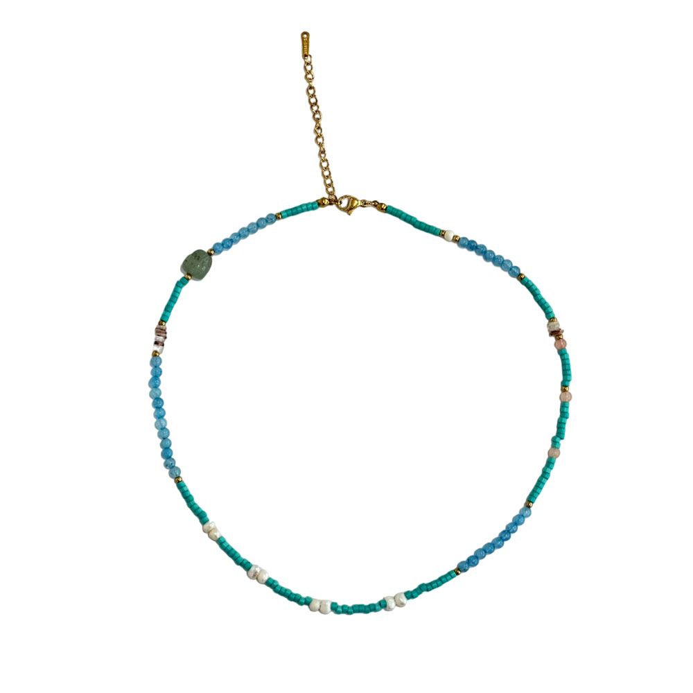 Kολιέ αποτελούμενο απο χάντες με άκρως καλοκαιρινή διάθεση. Διαθέτει αυξομείωση και μπορείτε να καθορίσετε το ύψος του . Υλικό αλυσίδας Ατσάλι Μήκος Αλυσίδας: 43 εκ. Προέκταση: 5 εκ.