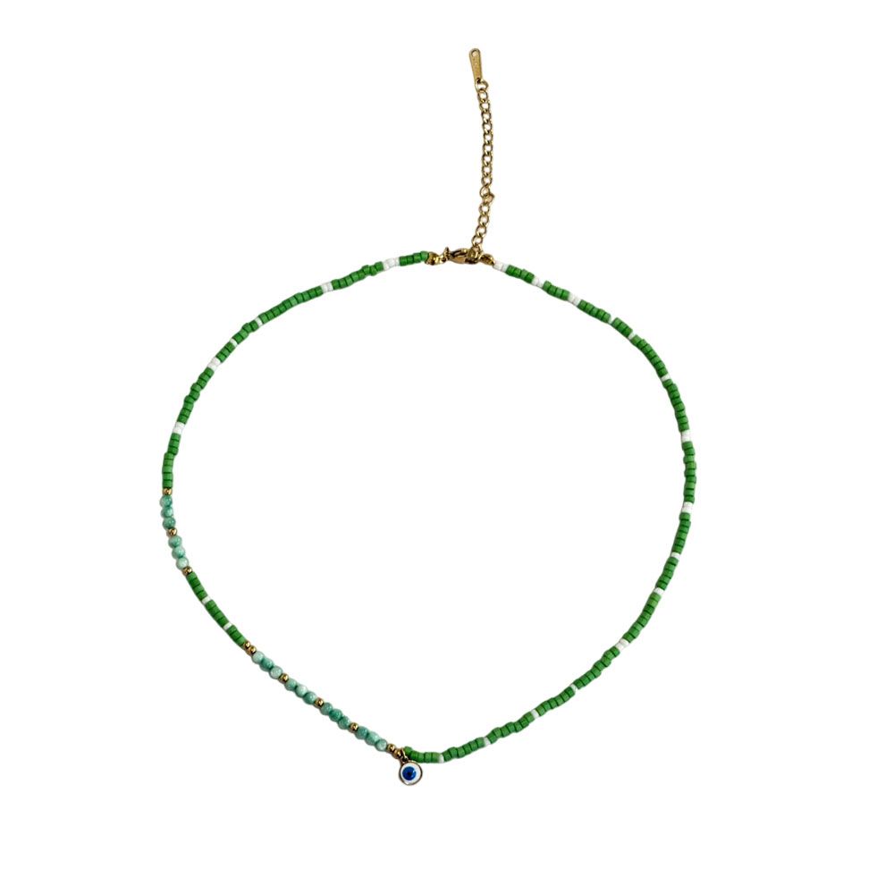Kολιέ αποτελούμενο απο χάντες με άκρως καλοκαιρινή διάθεση. Διαθέτει αυξομείωση και μπορείτε να καθορίσετε το ύψος του . Υλικό αλυσίδας Ατσάλι Μήκος Αλυσίδας: 43 εκ. Προέκταση: 5 εκ.