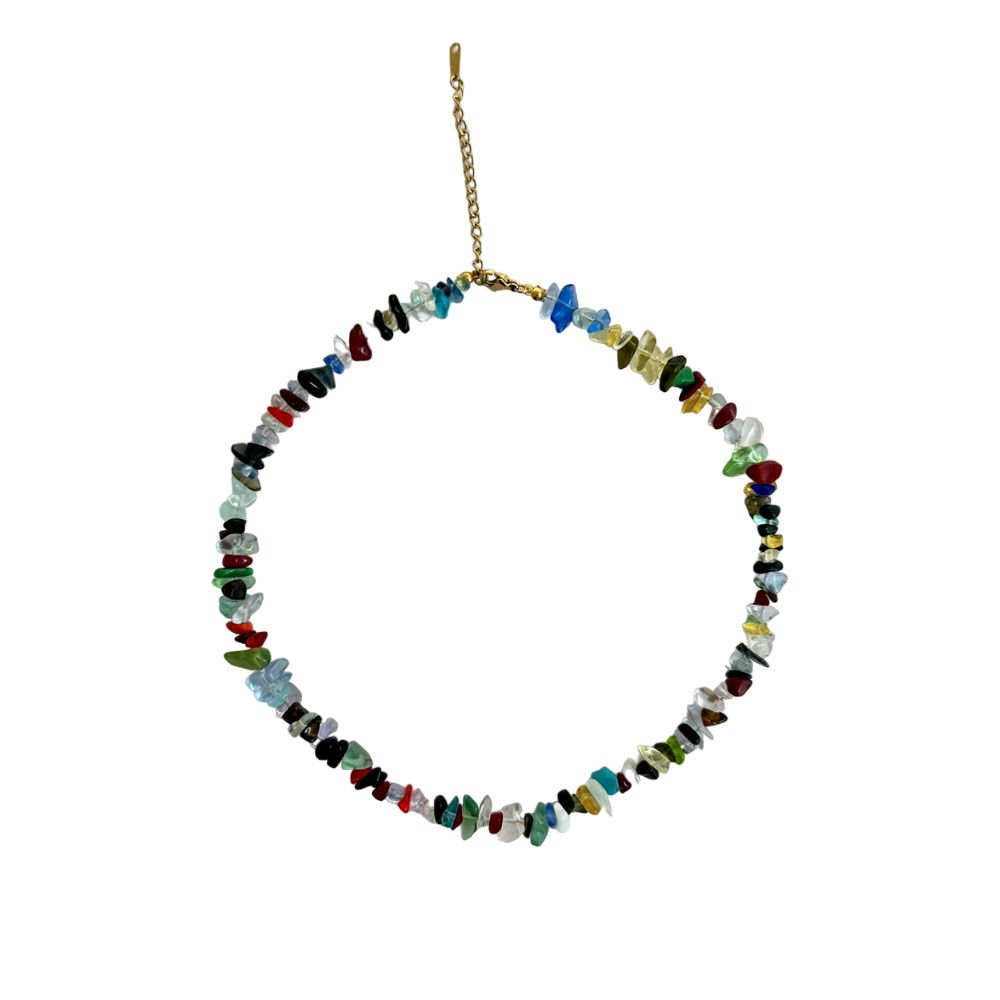 Kολιέ αποτελούμενο απο χάντες με άκρως καλοκαιρινή διάθεση. Διαθέτει αυξομείωση και μπορείτε να καθορίσετε το ύψος του . Υλικό αλυσίδας Ατσάλι Μήκος Αλυσίδας: 43 εκ. Προέκταση: 5 εκ.