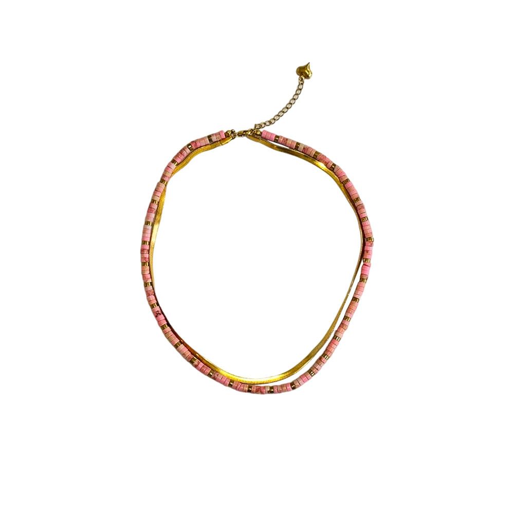 Kολιέ αποτελούμενο απο ροζ χάντες με άκρως καλοκαιρινή διάθεση. Διαθέτει αυξομείωση και μπορείτε να καθορίσετε το ύψος του . Υλικό αλυσίδας Ατσάλι Μήκος Αλυσίδας: 43 εκ. Προέκταση: 5 εκ.