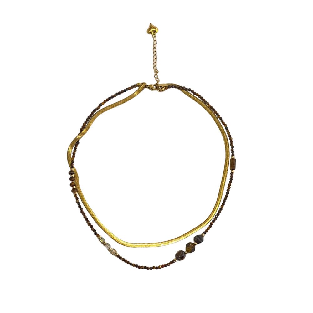 Kολιέ αποτελούμενο απο καφέ χάντες με άκρως καλοκαιρινή διάθεση. Διαθέτει αυξομείωση και μπορείτε να καθορίσετε το ύψος του . Υλικό αλυσίδας Ατσάλι Μήκος Αλυσίδας: 43 εκ. Προέκταση: 5 εκ.