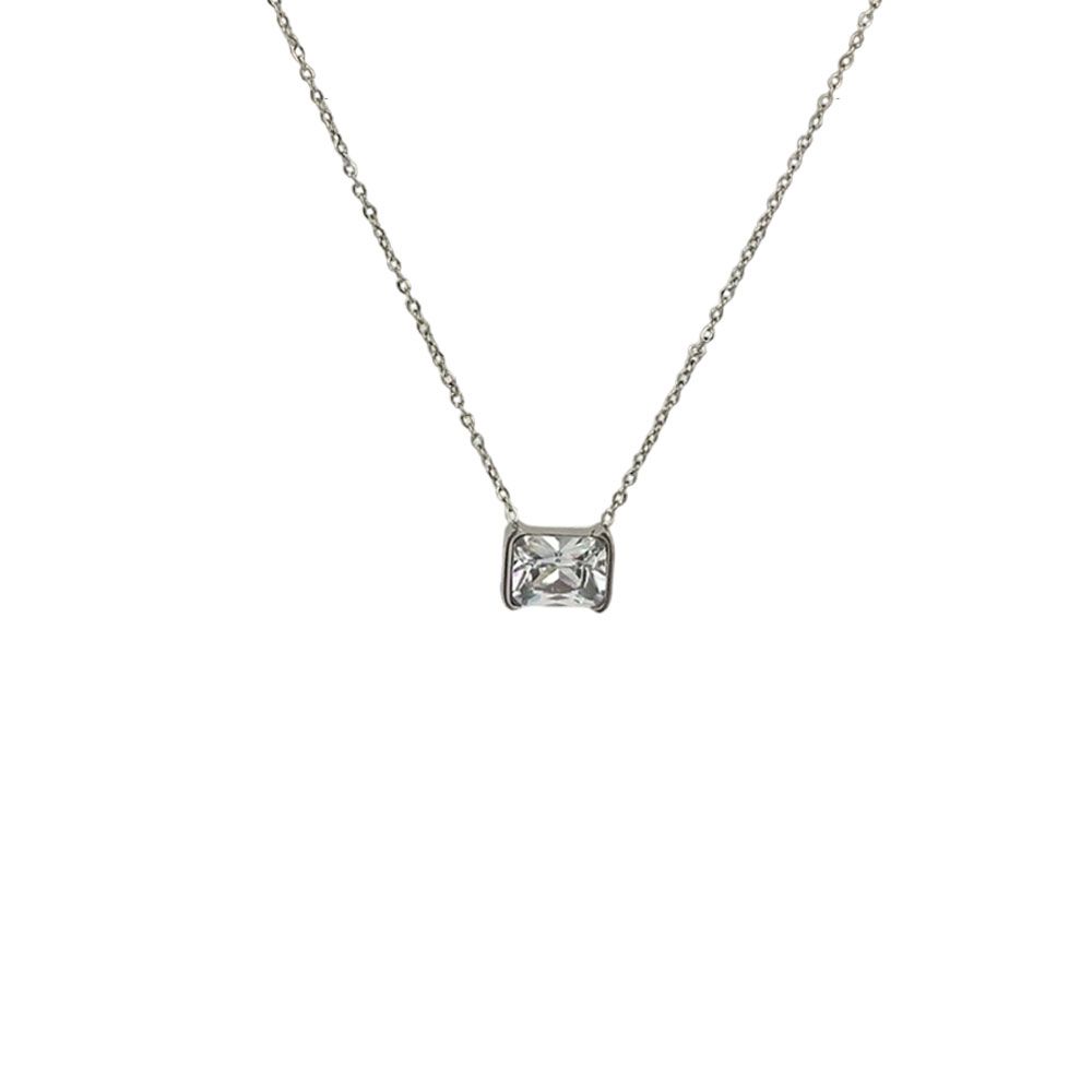 • Ατσάλινο Κολιέ Με Χρωματιστή Πέτρα - Ασημί ΡοζA3110B