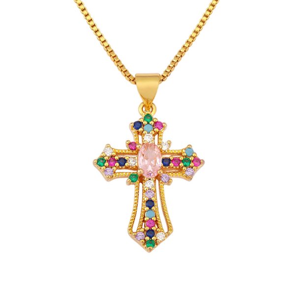 Κομψό κολιέ με ατσάλινη αλυσίδα και εντυπωσιακό σταυρό διακοσμημένο με πολύχρωμες λαμπερές πέτρες.Ένα μοντέρνο και ταυτόχρονα διαχρονικό κόσμημα που χαρίζει λάμψη και στυλ σε κάθε εμφάνιση.Ιδανικό για να φορεθεί μόνο του ή σε συνδυασμό με άλλα λεπτά κολιέ.