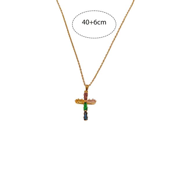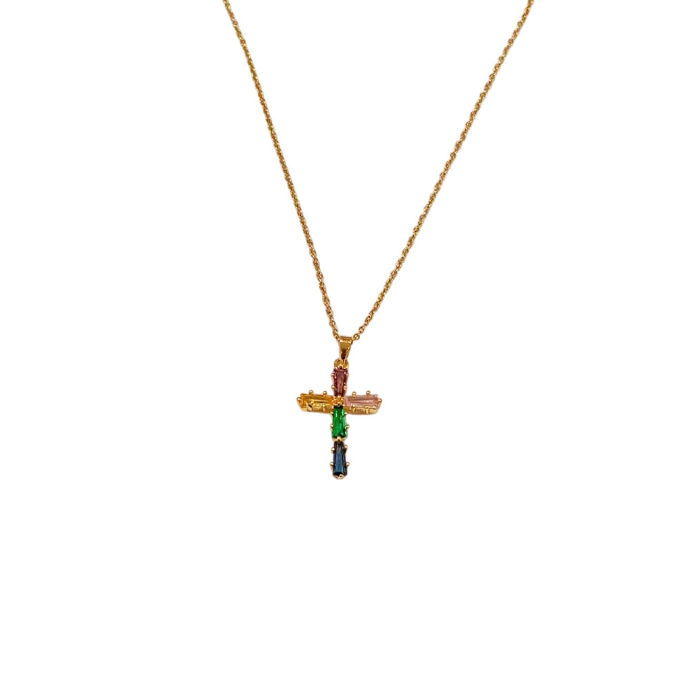 • Κολιέ με Ατσάλινη Αλυσίδα & Σταυρό με Πολύχρωμες Πέτρες - Χρυσό ΠολύχρωμοA64004C