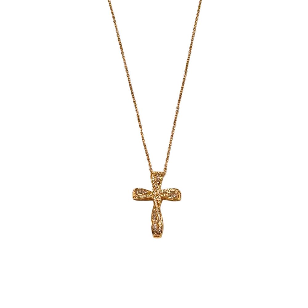 Κολιέ με Ατσάλινη Αλυσίδα & Σταυρό με Ζιργκόν – Χρυσό