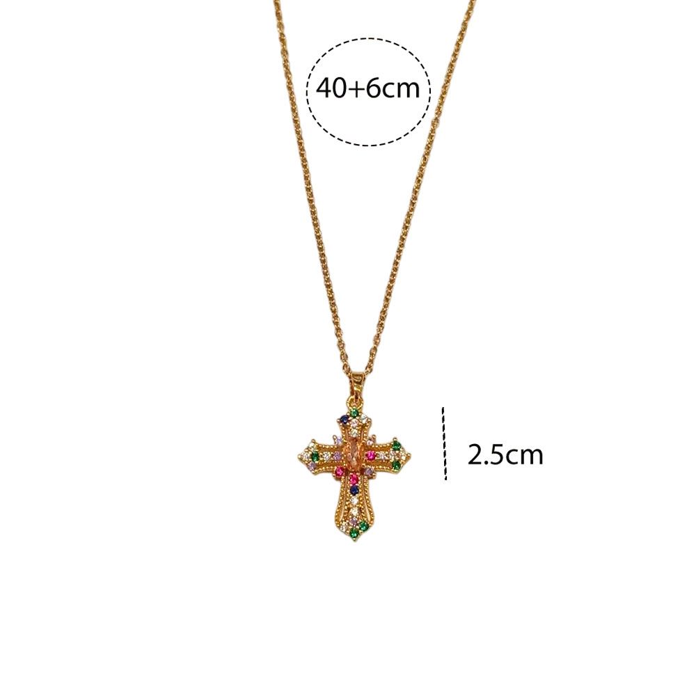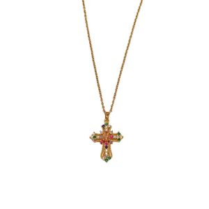 Κομψό κολιέ με ατσάλινη αλυσίδα και εντυπωσιακό σταυρό διακοσμημένο με πολύχρωμες λαμπερές πέτρες.Ένα μοντέρνο και ταυτόχρονα διαχρονικό κόσμημα που χαρίζει λάμψη και στυλ σε κάθε εμφάνιση.Ιδανικό για να φορεθεί μόνο του ή σε συνδυασμό με άλλα λεπτά κολιέ.