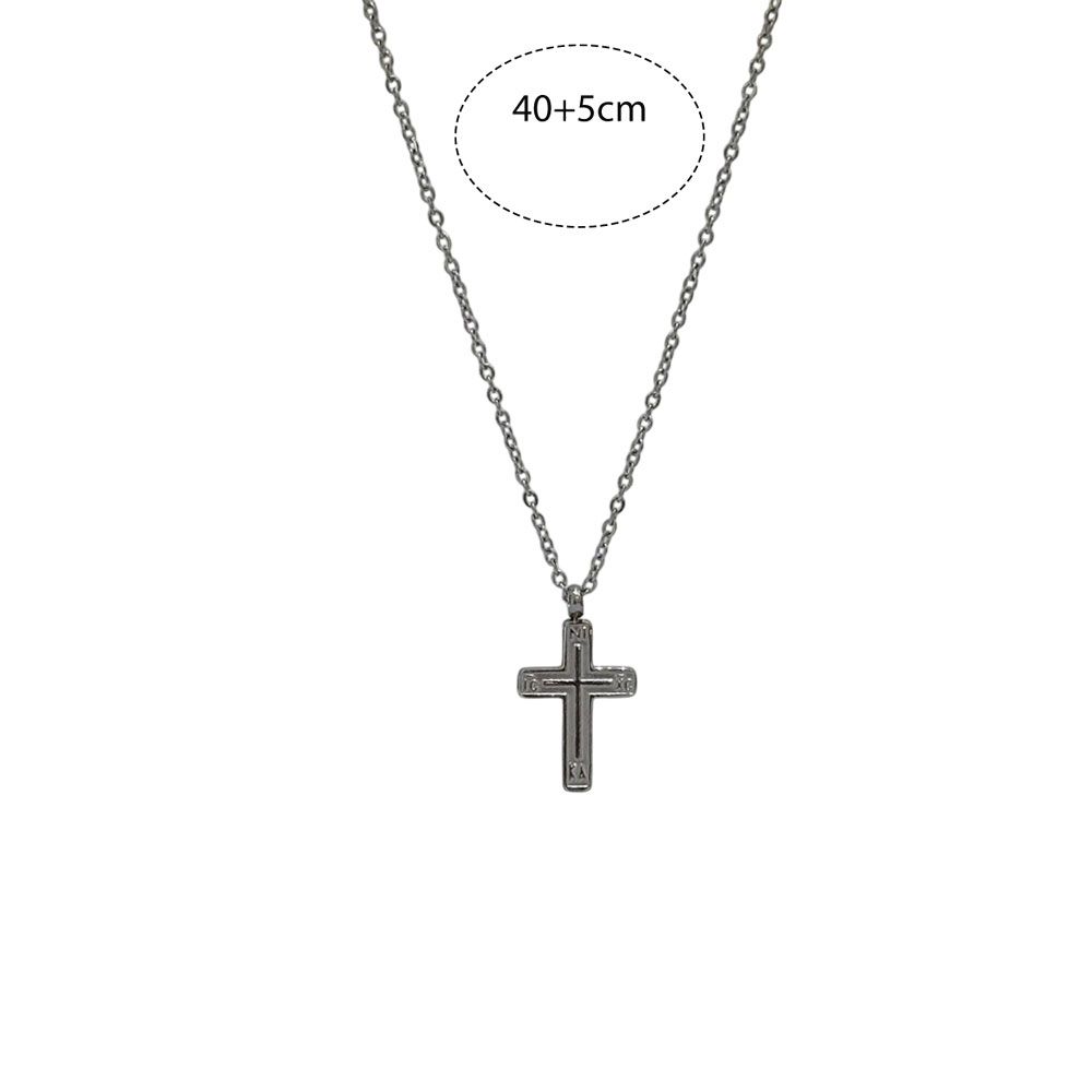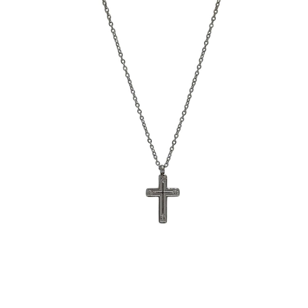 Stainless Steel Κολιέ με Ανάγλυφο Σταυρό IC XC NIKA – Ασημί
