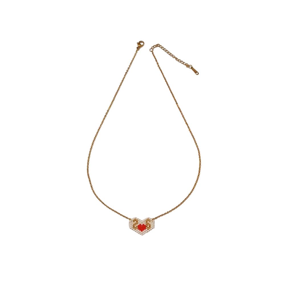 Ατσάλινο κολιέ με χρυσή αλυσίδα και μενταγιόν σε σχήμα καρδιάς, διακοσμημένο με χάντρες Miyuki και τον αριθμό 26. Ένα μοντέρνο και συμβολικό σχέδιο που συνδυάζει λάμψη και θετική ενέργεια — ιδανικό για τη νέα χρονιά!Φοριέται μόνο του ή σε layering για πιο ιδιαίτερο στυλ.Μήκος αλυσίδας 42+6cm, μέγεθος καρδιάς 2cm.