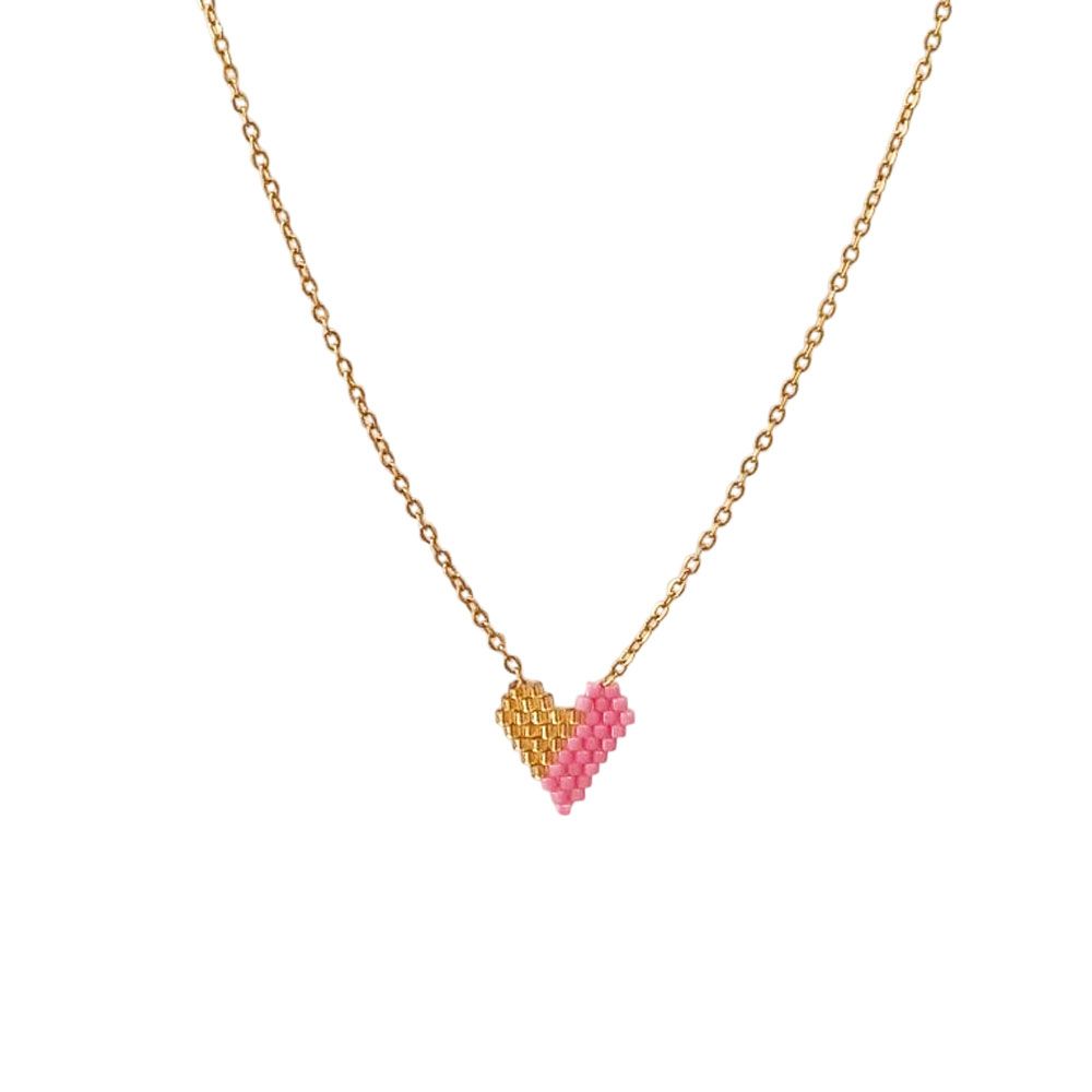 Κολιέ Ανοξείδωτο Ατσάλι με Δίχρωμη Καρδιά Miyuki – Ροζ