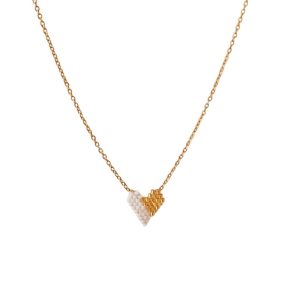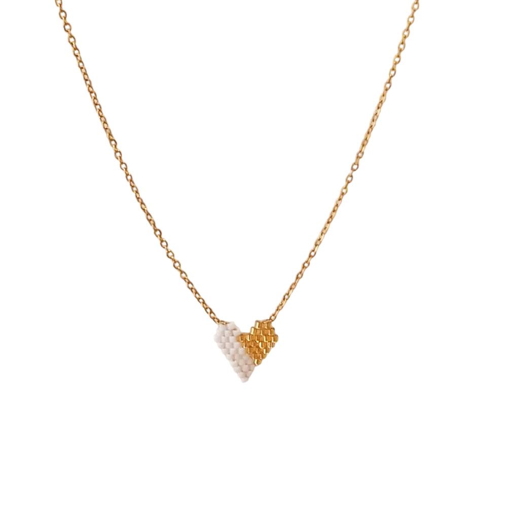 Κομψό κολιέ από ανοξείδωτο ατσάλι με ιδιαίτερο μοτίφ καρδιά φτιαγμένο από χάντρες Miyuki σε διχρωμία. Ένας μοναδικός συνδυασμός που χαρίζει παιχνιδιάρικο και μοντέρνο χαρακτήρα σε κάθε εμφάνιση. Ιδανικό για καθημερινή χρήση αλλά και ως ξεχωριστό δώρο.