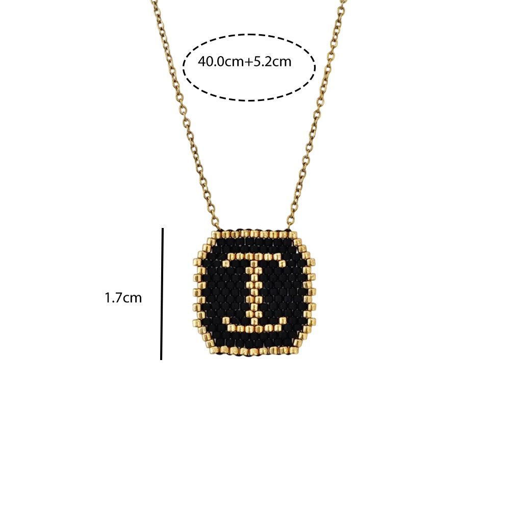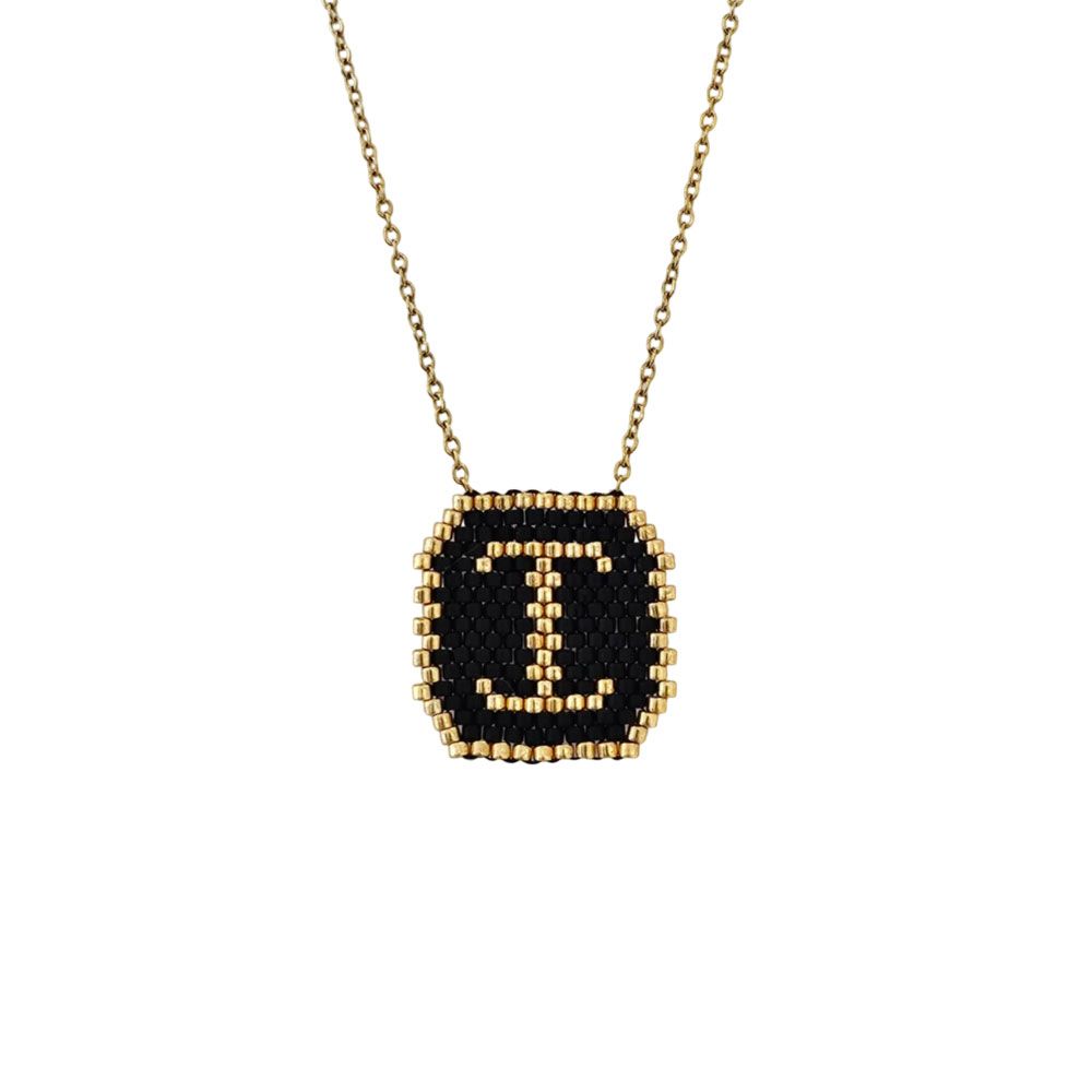 Γυναικείο Ατσάλινο Κολιέ Με Χρυσή Αλυσίδα Και Κρεμαστό Μονόγραμμα Με Μαύρες Και Χρυσές Χάντρες.Η Αλυσίδα Διαθέτει Αυξομείωση Και Προσαρμόζεται Στο Ύψος Που Επιθυμείτε.Είναι Υποαλλεργικά,Και Δεν Μαυρίζουν Μήκος Αλυσίδας: 40.0 εκ Προέκταση Αλυσίδας 5.2 εκ Υψος Κρεμαστού 1.7 εκ