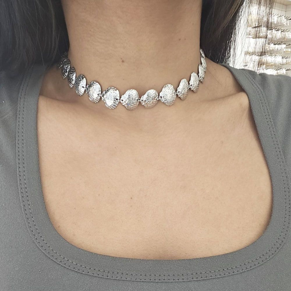 Γυναικείo Aτσάλινο Τσόκερ Με Κοχύλια – Ασημί