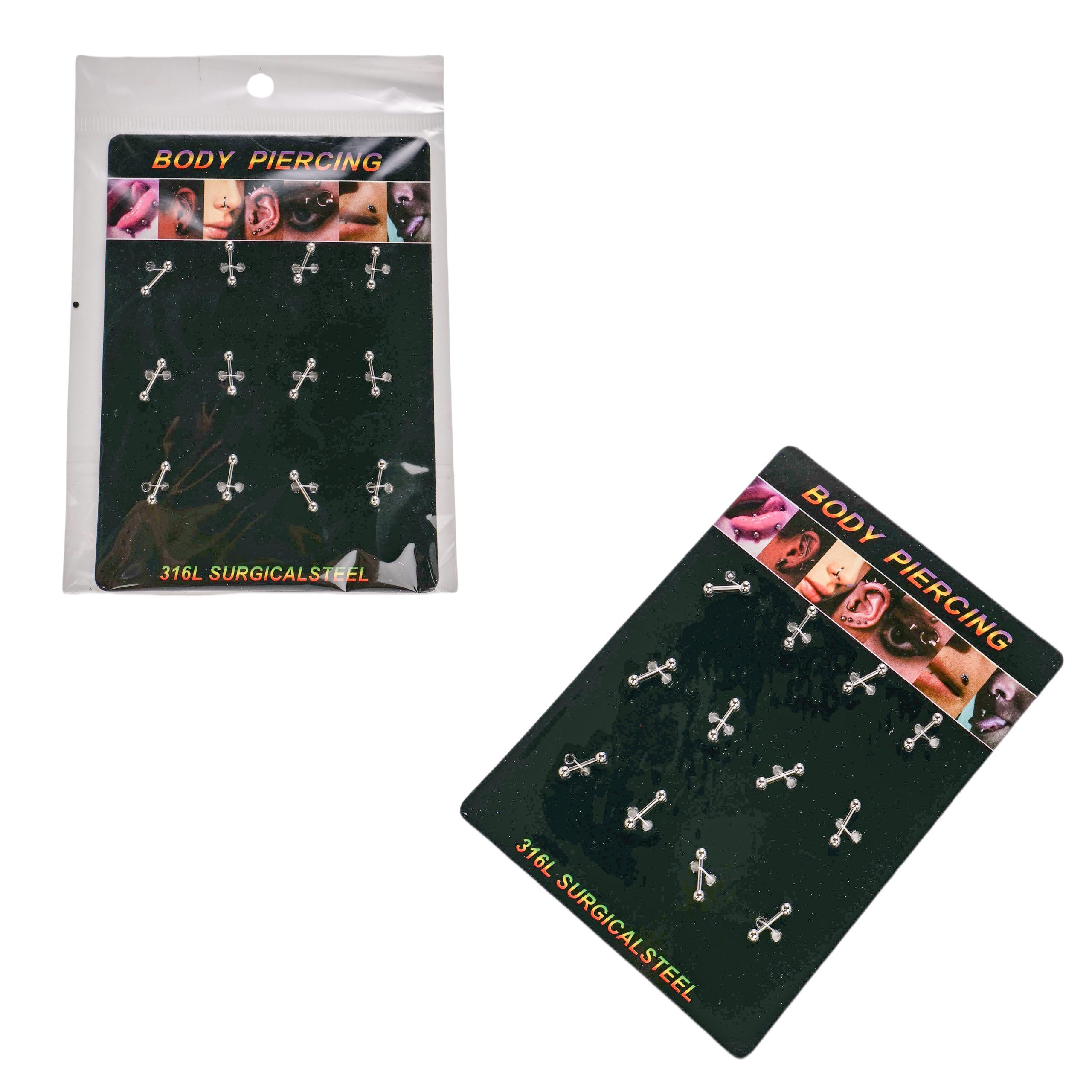Σετ σκουλαρίκια που μπορούν να χρησιμοποιηθούν στο σώμα, στην γλώσσα, στα χείλη, στα φρύδια και στα αυτιά. Υλικό:Ατσάλι