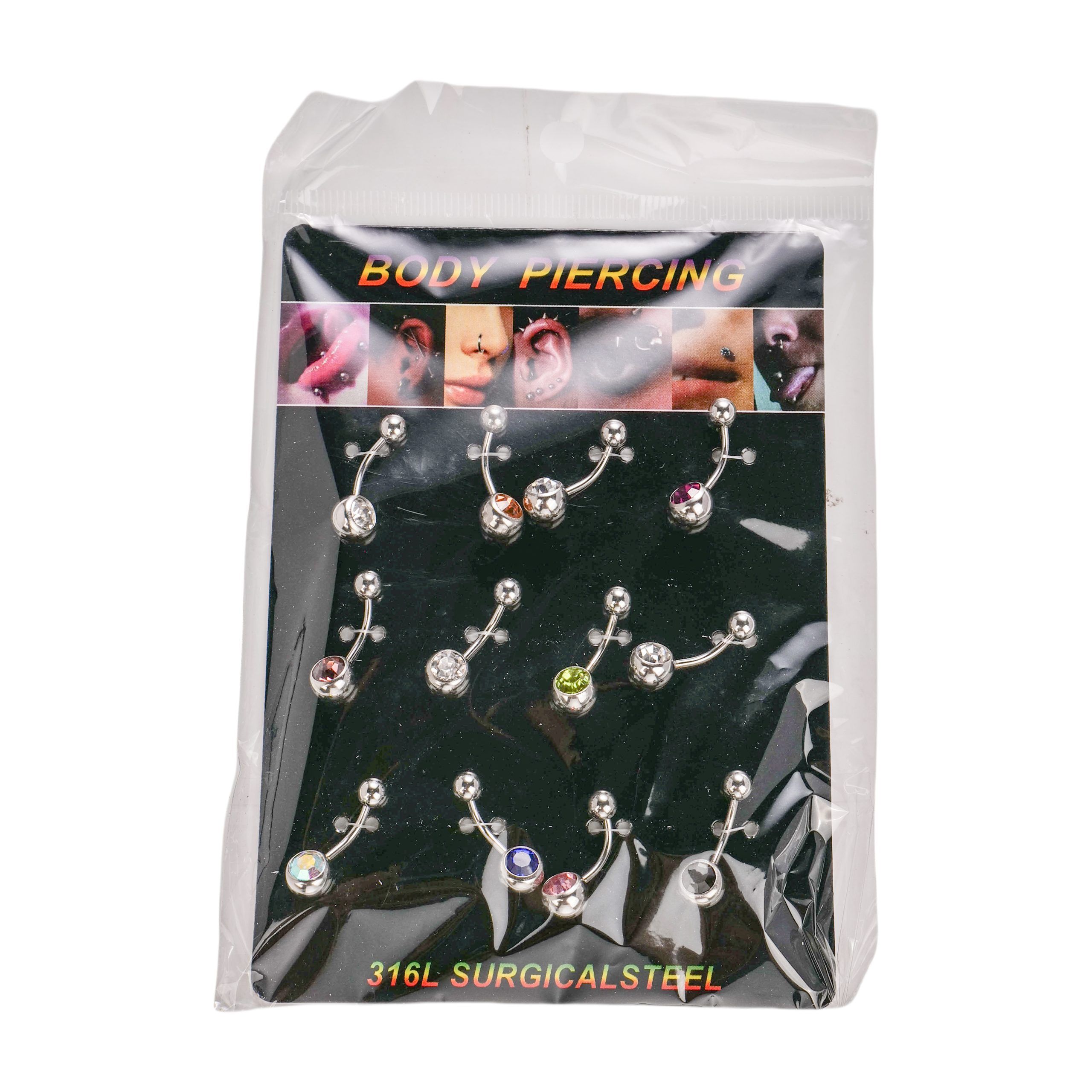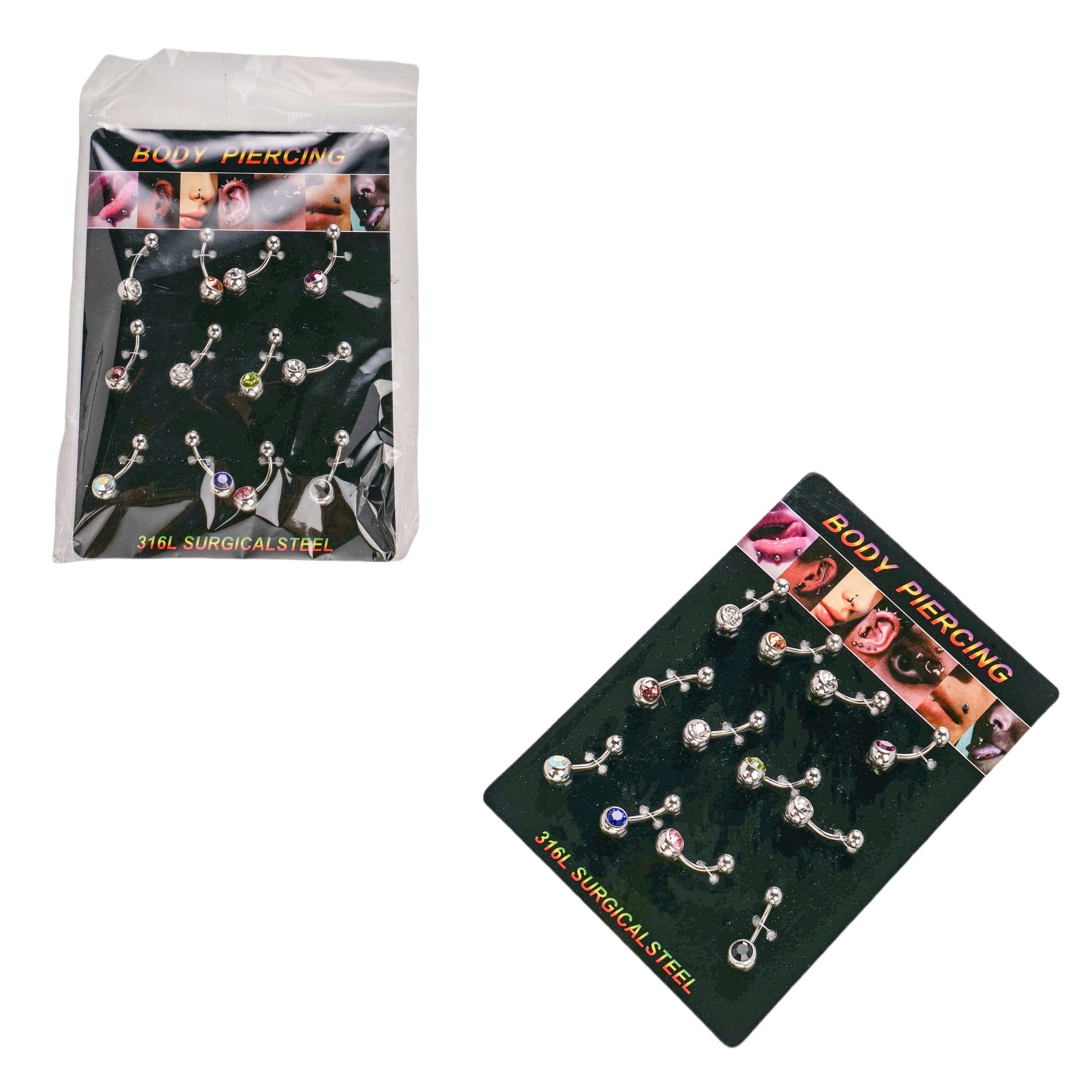 Σετ σκουλαρίκια που μπορούν να χρησιμοποιηθούν στο σώμα, στην γλώσσα, στα χείλη, στα φρύδια και στα αυτιά. Υλικό:Ατσάλι
