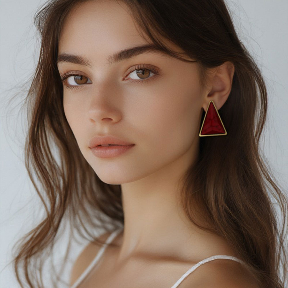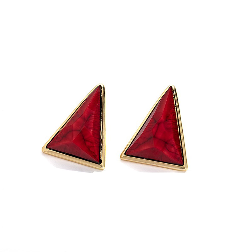 • Ατσάλινα Σκουλαρίκια με Γεωμετρικό Τριγωνικό Σχέδιο Χρώμα Χρυσό με ΚόκκινοA3412