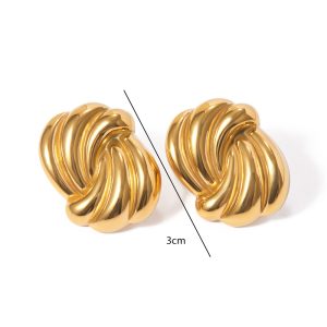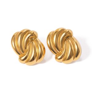 Εντυπωσιακά σκουλαρίκια από ανοξείδωτο ατσάλι με σχέδιο κόμπου και γυαλιστερό φινίρισμα. Οι καμπύλες γραμμές δημιουργούν ένα δυναμικό, ανάγλυφο αποτέλεσμα που αποπνέει σύγχρονη κομψότητα και διαχρονικό χαρακτήρα. Το συμπαγές τους σχήμα προσφέρει ένταση στο look χωρίς να χάνει την ισορροπία και την άνεση στην εφαρμογή. Ιδανικά για elegant εμφανίσεις αλλά και για να αναβαθμίσουν ένα απλό καθημερινό σύνολο με μια μοντέρνα πινελιά.