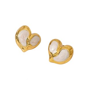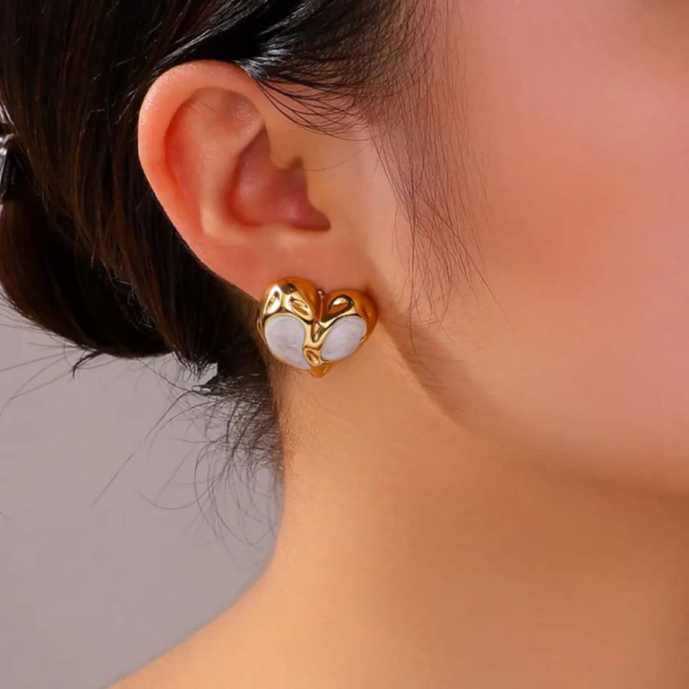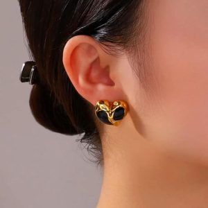Σκουλαρίκια Ατσάλινα Καρφωτά Σε Σχήμα Καρδιάς – Χρυσό Μαύρο