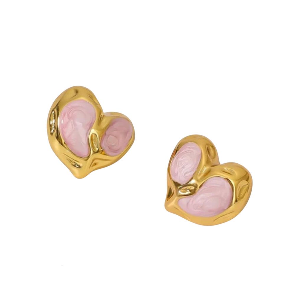 • Σκουλαρίκια Ατσάλινα Καρφωτά Σε Σχήμα Καρδιάς - Χρυσό ΡοζA33049-2