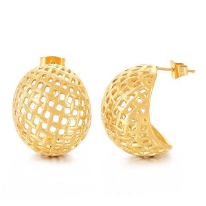 Κομψά καρφωτά σκουλαρίκια από ανοξείδωτο ατσάλι με οβάλ διάτρητο σχέδιο που προσφέρει ελαφριά αίσθηση και μοντέρνα λάμψη. Ιδανικά για καθημερινή χρήση αλλά και για elegant εμφανίσεις, συνδυάζονται εύκολα με κάθε στυλ.
