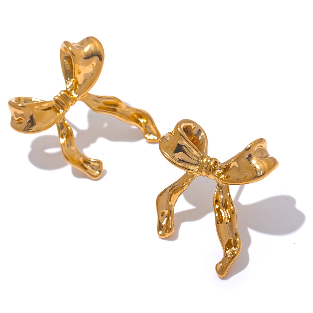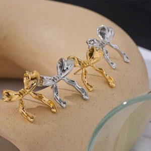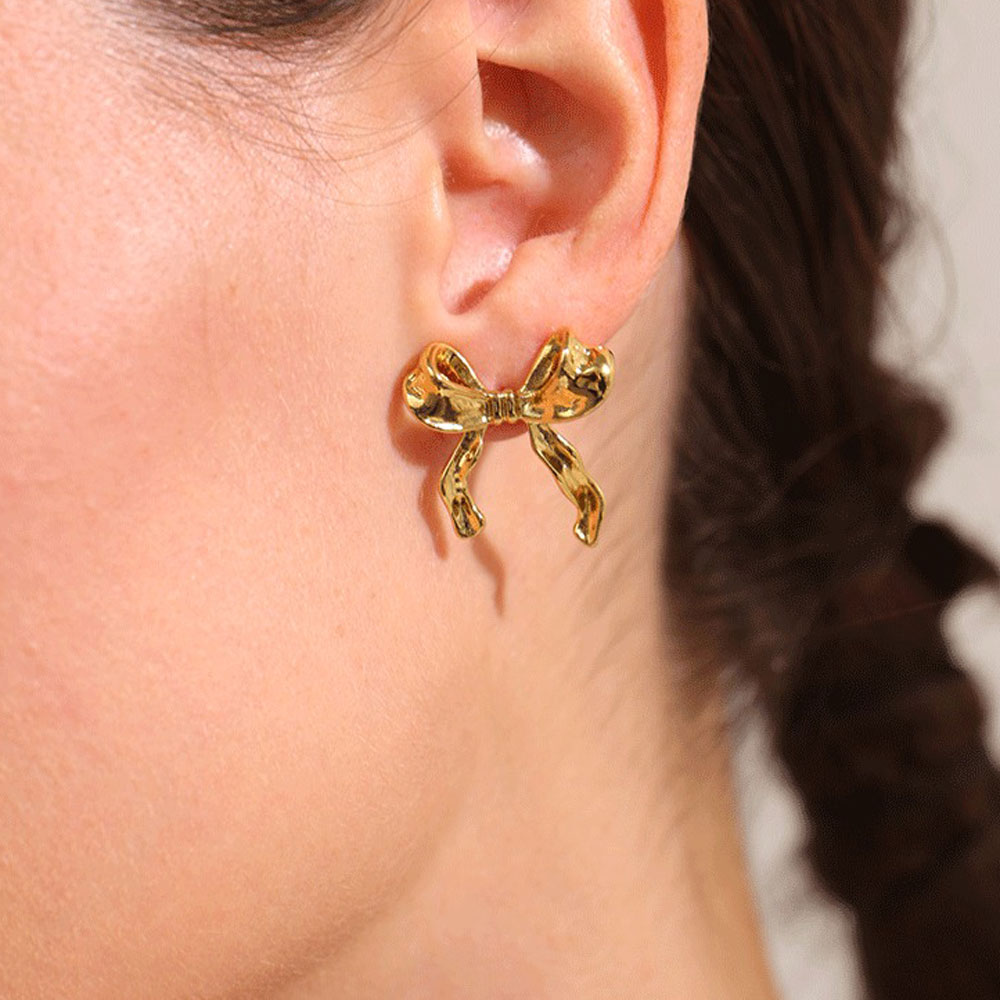 Κομψά σκουλαρίκια από ανοξείδωτο ατσάλι με διαχρονικό σχέδιο φιόγκου και λεία, γυαλιστερή επιφάνεια που προσδίδει κομψότητα και θηλυκή αισθητική. Ο μικρός και διακριτικός σχεδιασμός τους τα καθιστά ιδανικά για καθημερινή χρήση, ενώ παράλληλα προσθέτουν μια elegant πινελιά σε κάθε εμφάνιση. Φοριούνται άνετα και συνδυάζονται εύκολα με minimal ή πιο ρομαντικά κοσμήματα.