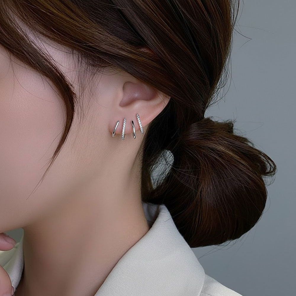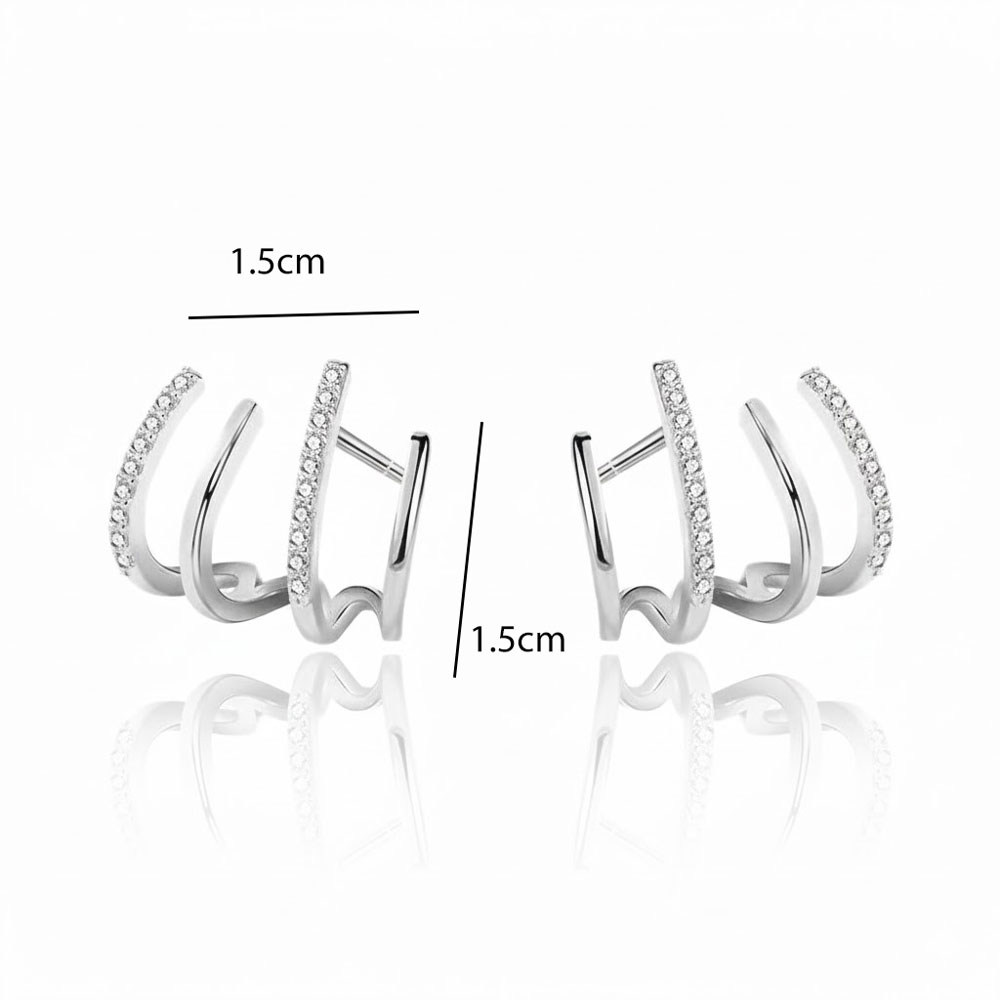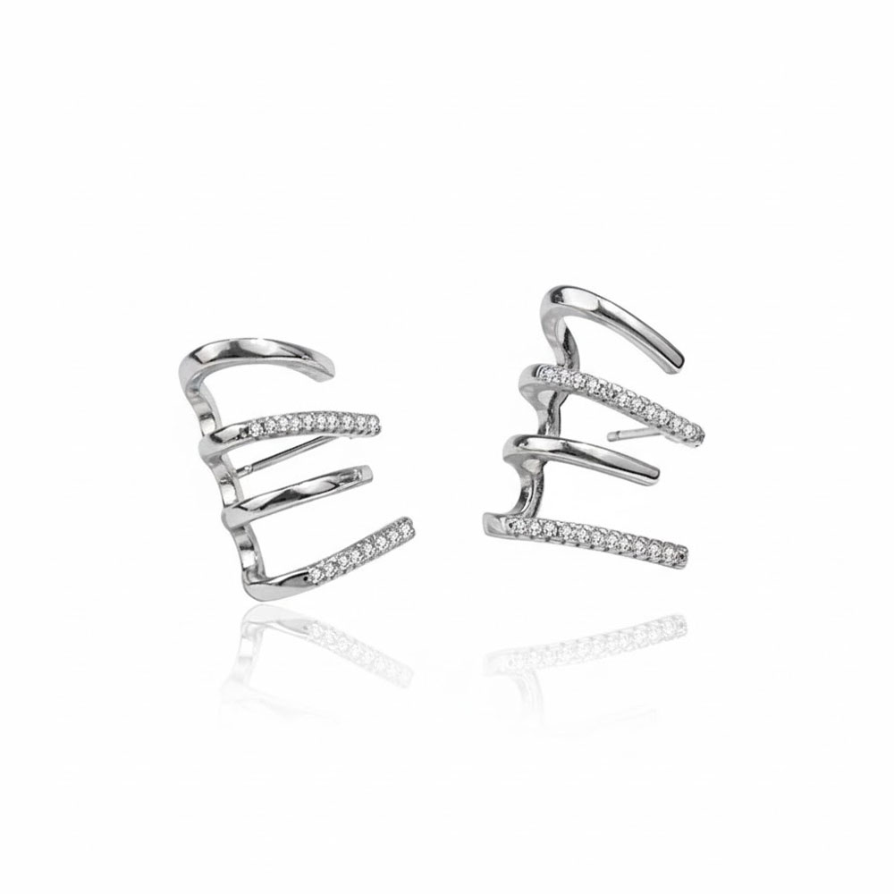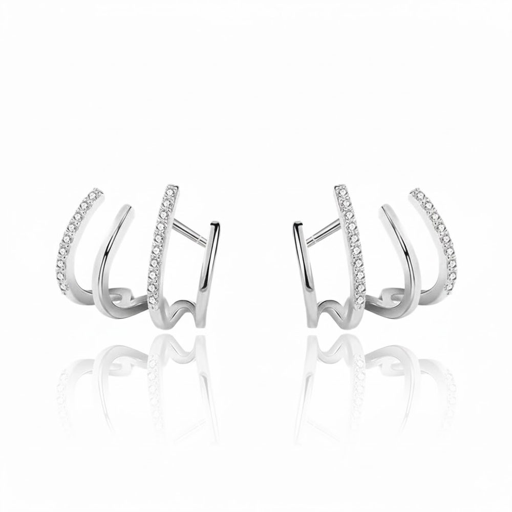Ατσάλινα σκουλαρίκια με εντυπωσιακό σχεδιασμό τετραπλής καμπύλης και διακριτικές λεπτομέρειες από λαμπερά στρας, που δημιουργούν ένα μοντέρνο και κομψό αποτέλεσμα. Οι καμπύλες αγκαλιάζουν αρμονικά το αυτί, προσφέροντας ιδιαίτερο χαρακτήρα και φίνα λάμψη. Ελαφριά, ανθεκτικά και άνετα στη χρήση, είναι ιδανικά τόσο για καθημερινές εμφανίσεις όσο και για πιο προσεγμένες εξόδους, ολοκληρώνοντας κάθε σύνολο με στυλ.