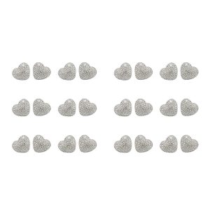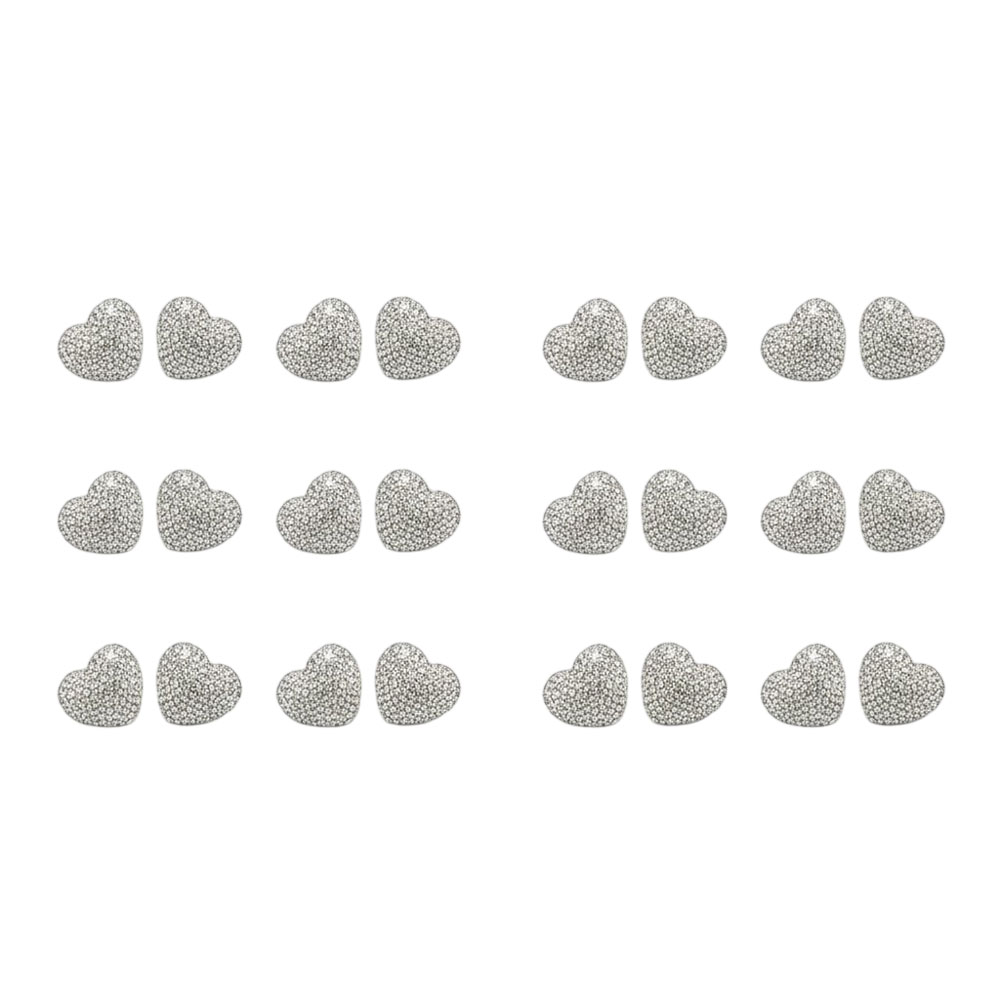 Σκουλαρίκια Καρδιά με Στρας & Ατσάλινη Βελόνα Σετ 12 Τεμαχίων
