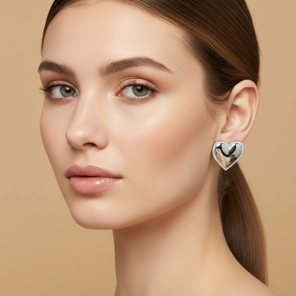 Ατσάλινα σκουλαρίκια σε σχήμα καρδιάς, με λαμπερό περίγραμμα από στρας που χαρίζει κομψή λάμψη και ρομαντικό χαρακτήρα. Η λεία, γυαλιστερή επιφάνεια στο κέντρο δημιουργεί όμορφη αντίθεση με τα στρας, προσφέροντας ένα elegant και διαχρονικό αποτέλεσμα. Ανθεκτικά και άνετα στη χρήση, είναι ιδανικά για καθημερινές αλλά και πιο ιδιαίτερες εμφανίσεις, προσθέτοντας μία φίνα πινελιά στο στυλ σας.