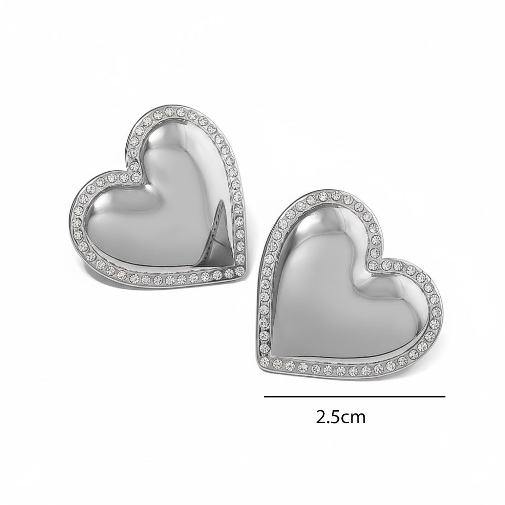 Σκουλαρίκια Καρδιά με Στρας στο Περίγραμμα από Ατσάλι Ασημί