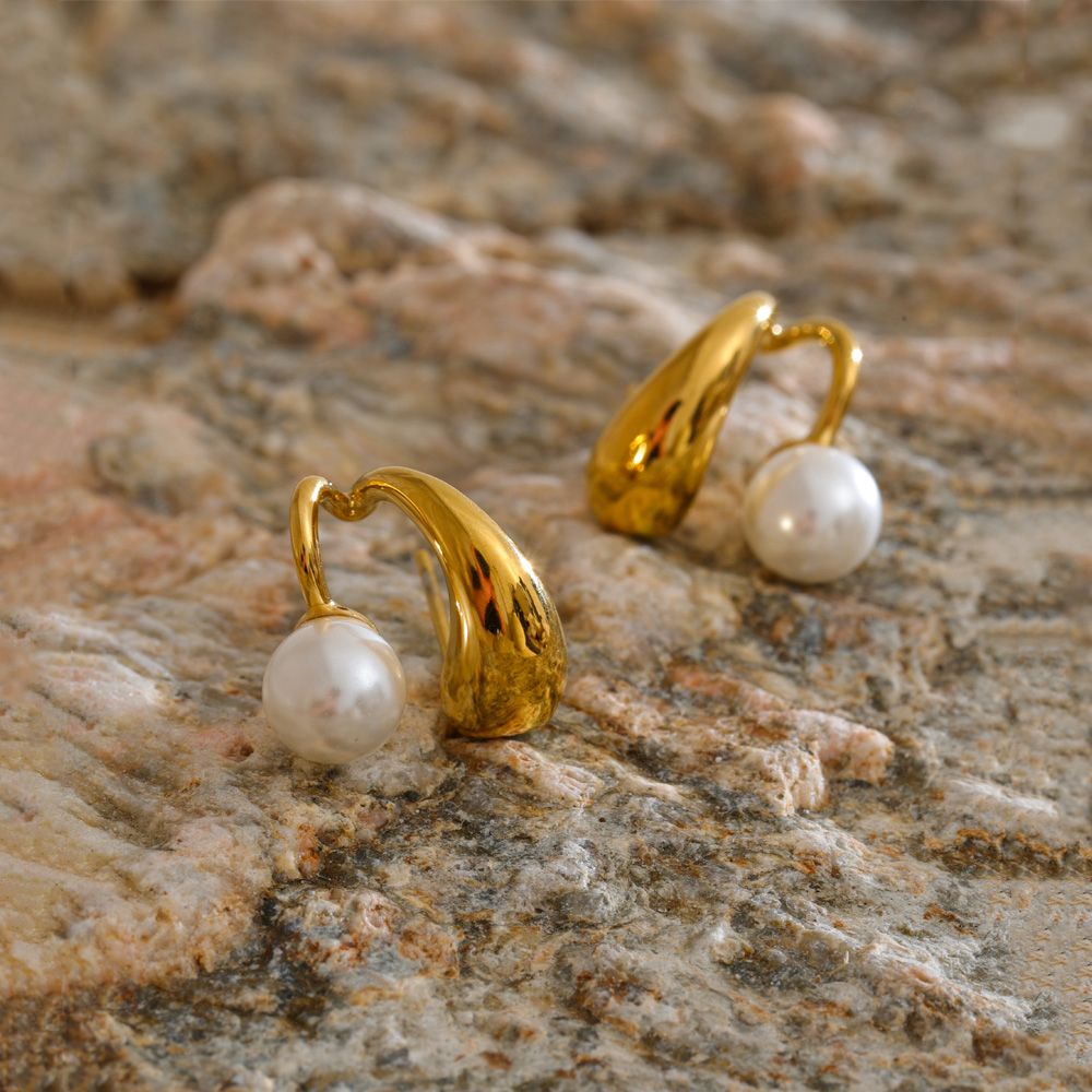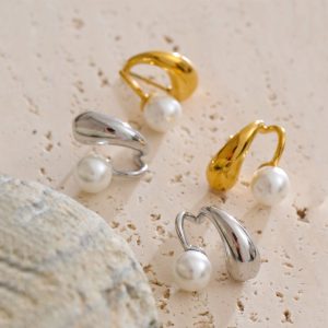 Κομψά χρυσά σκουλαρίκια από ανοξείδωτο ατσάλι με πέρλα και ακανόνιστο, καλλιτεχνικό σχέδιο που αποπνέει μοντέρνα φινέτσα. Ο εντυπωσιακός συνδυασμός του λαμπερού μετάλλου με τη διαχρονική πέρλα δημιουργεί ένα μοναδικό αποτέλεσμα, ιδανικό για κάθε εμφάνιση. Ανθεκτικά, υποαλλεργικά και εξαιρετικά ελαφριά, προσθέτουν στυλ και κομψότητα με μία πινελιά πολυτέλειας.