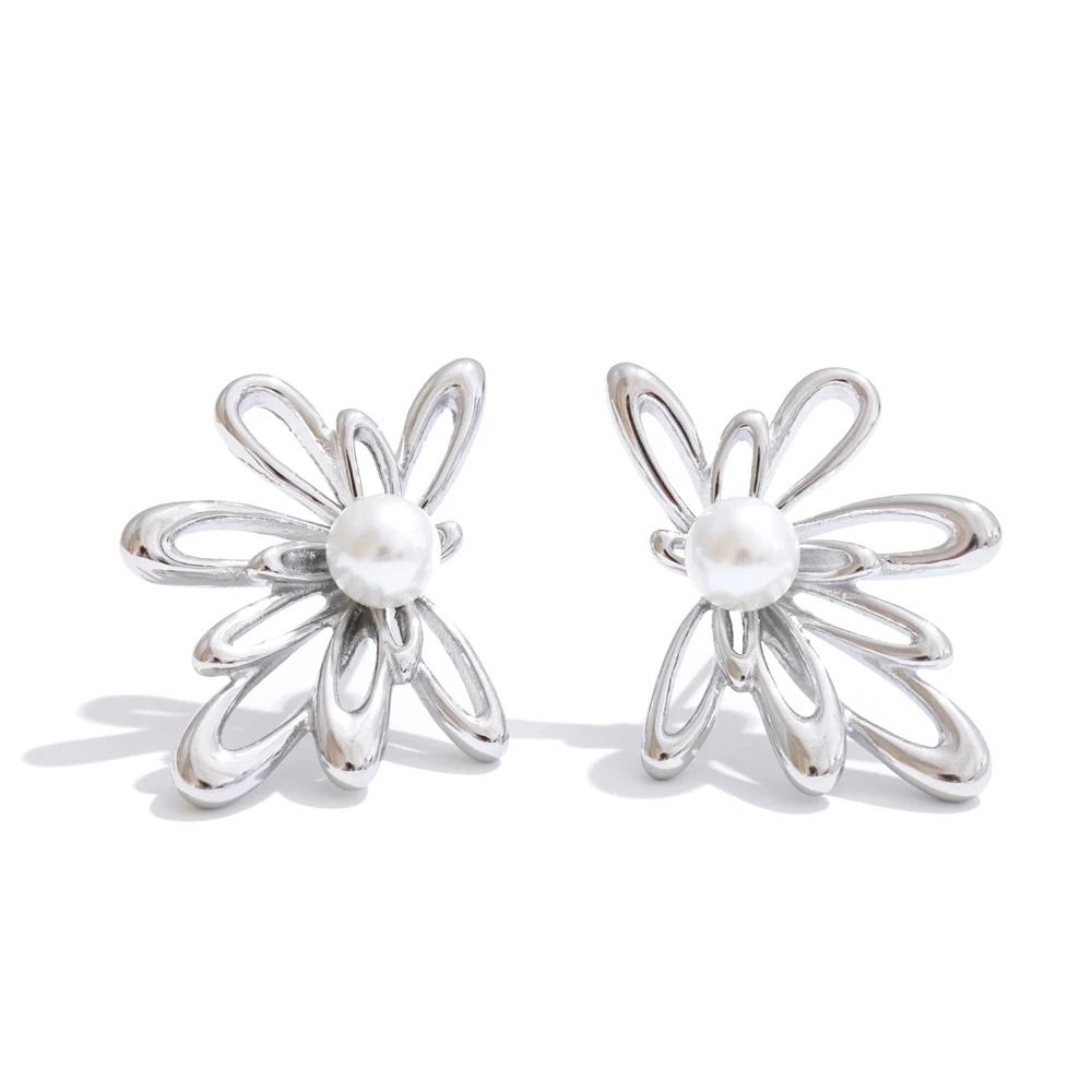 Ατσάλινα Σκουλαρίκια Λουλούδι με Πέρλα - ΧρυσόA3939A