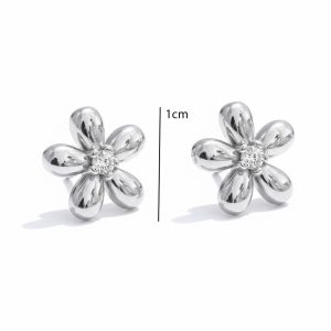Κομψά καρφωτά σκουλαρίκια σε σχήμα λουλουδιού, κατασκευασμένα από ανοξείδωτο ατσάλι σε ασημί χρώμα, με διακριτική κεντρική πέτρα που προσθέτει λάμψη και θηλυκή κομψότητα. Το ρομαντικό τους σχέδιο τα καθιστά ιδανική επιλογή για καθημερινή χρήση αλλά και για πιο προσεγμένες εμφανίσεις.Ελαφριά και άνετα στο αυτί, ανθεκτικά στη φθορά και υποαλλεργικά, με μέγεθος περίπου 1 cm, κατάλληλα για όλες τις ώρες.