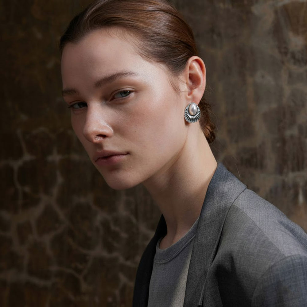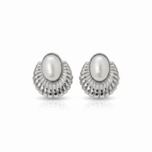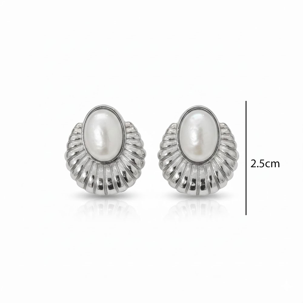 Εντυπωσιακά σκουλαρίκια από ανοξείδωτο ατσάλι με οβάλ κεντρικό στοιχείο και ανάγλυφο σχέδιο που θυμίζει κομψό κέλυφος. Ένα elegant και διαχρονικό κομμάτι που αναδεικνύει το πρόσωπο και προσθέτει μια αίσθηση πολυτέλειας σε κάθε εμφάνιση.