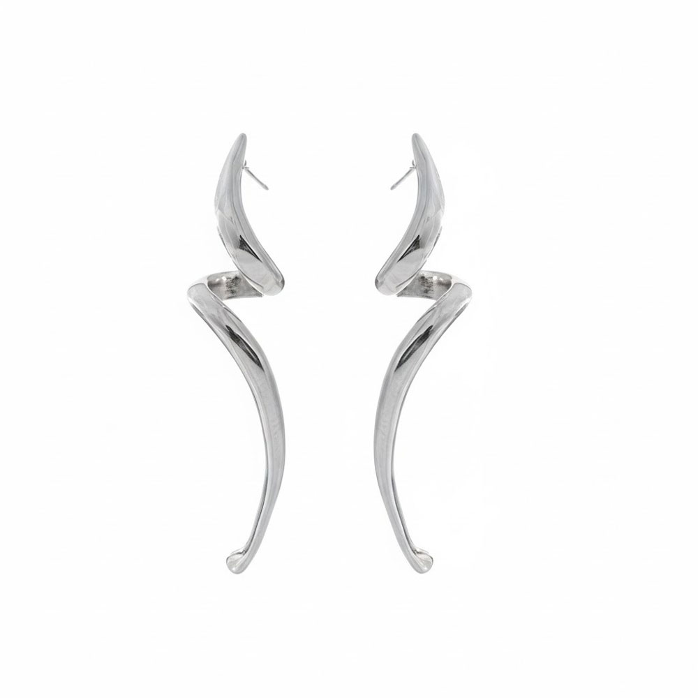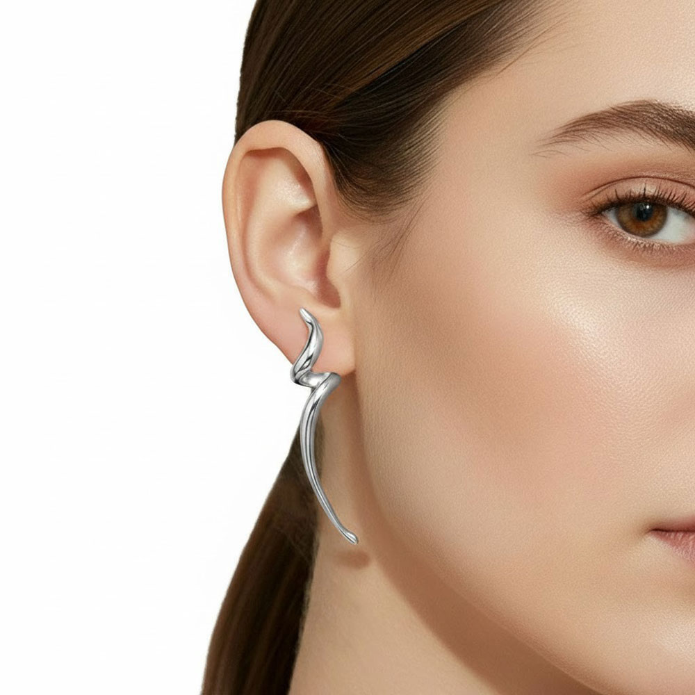 Κρεμαστά σκουλαρίκια από ανοξείδωτο ατσάλι με επιμήκη, κυματιστή γραμμή και γυαλιστερό φινίρισμα που αναδεικνύει τη ρευστότητα του σχεδίου. Η μίνιμαλ και σύγχρονη φόρμα τους δημιουργεί ένα κομψό αποτέλεσμα με κίνηση, αγκαλιάζοντας διακριτικά το αυτί. Ελαφριά και άνετα στην εφαρμογή, αποτελούν ιδανική επιλογή για καθημερινές αλλά και πιο ιδιαίτερες εμφανίσεις, προσθέτοντας μοντέρνα κομψότητα και διαχρονικό χαρακτήρα στο look.