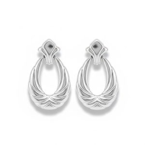 • Ατσάλινα Κρεμαστά Σκουλαρίκια με Ανάγλυφο Σχέδιο Ασημί ΧρώμαA1166B