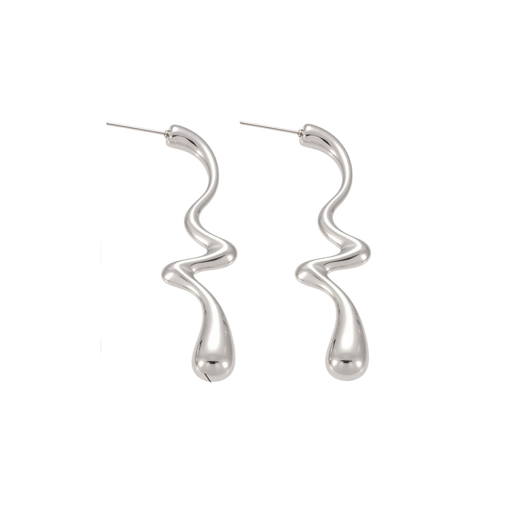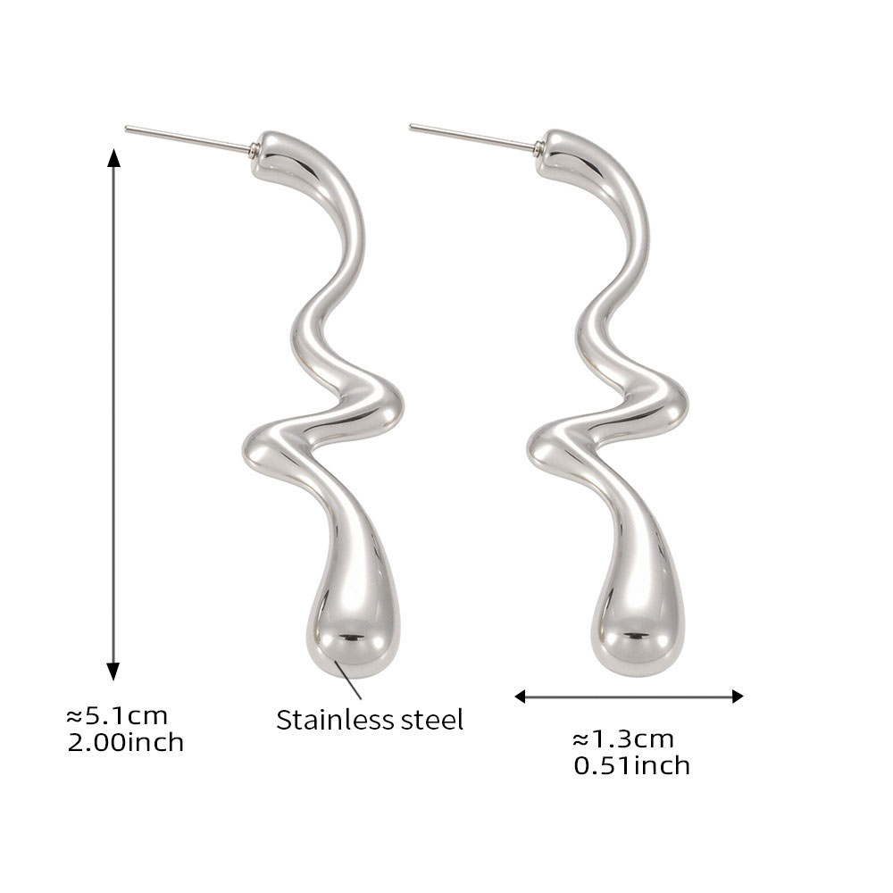 Μοντέρνα κρεμαστά σκουλαρίκια από ανοξείδωτο ατσάλι, με κομψή κυματιστή γραμμή που προσδίδει κίνηση και σύγχρονη αισθητική. Ο ρευστός και μίνιμαλ σχεδιασμός τους τα καθιστά ιδανική επιλογή για εμφανίσεις που θέλουν να ξεχωρίζουν, τόσο σε καθημερινά όσο και σε πιο βραδινά looks. Ανθεκτικά, ελαφριά και άνετα στη χρήση, συνδυάζονται εύκολα με κάθε στυλ και αποτελούν statement κόσμημα με μοντέρνο χαρακτήρα.
