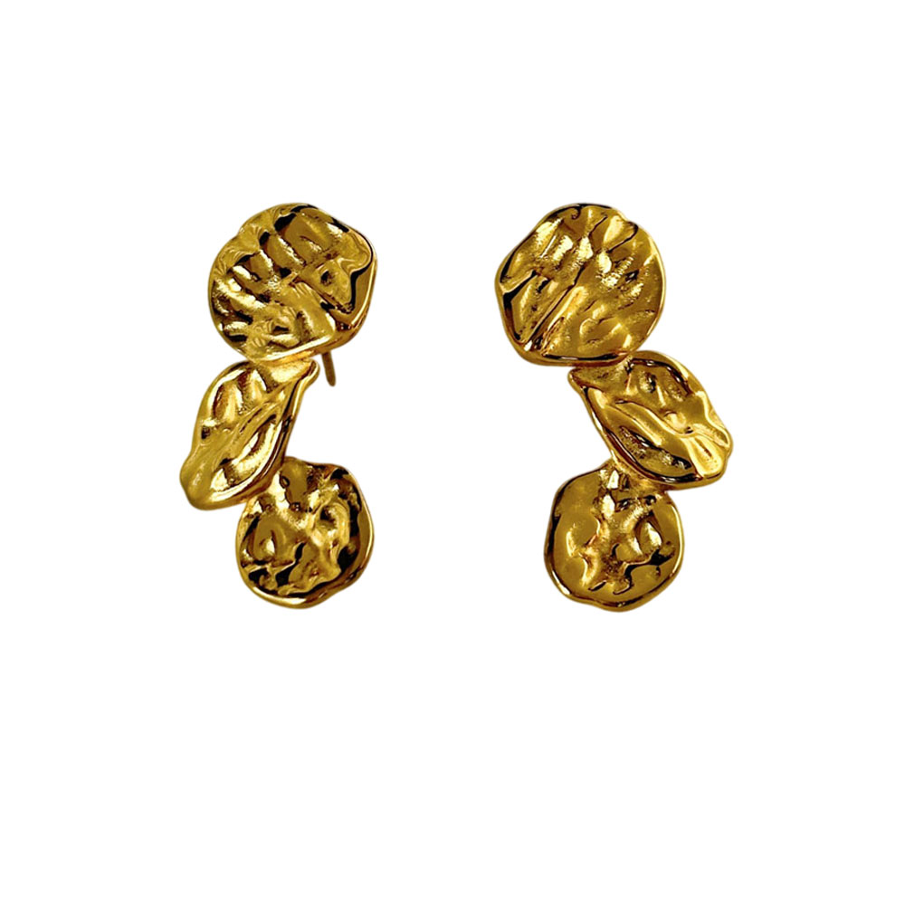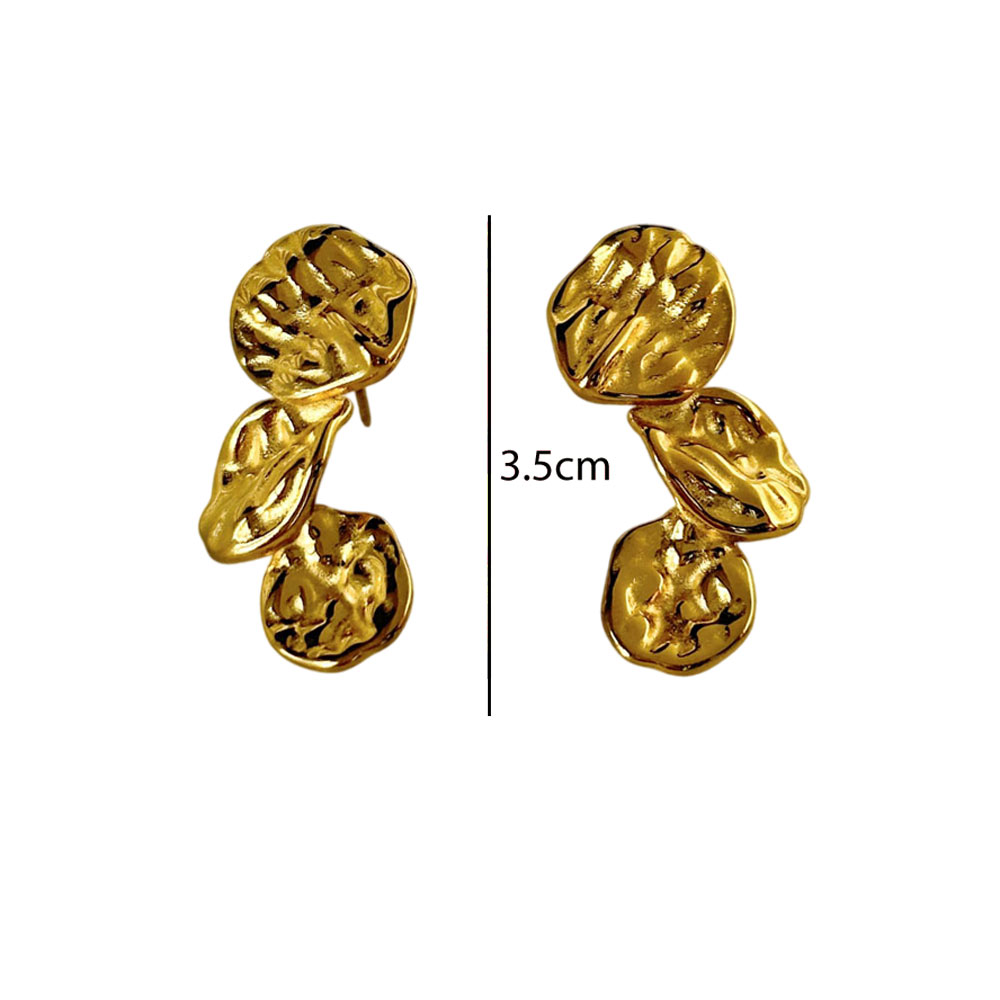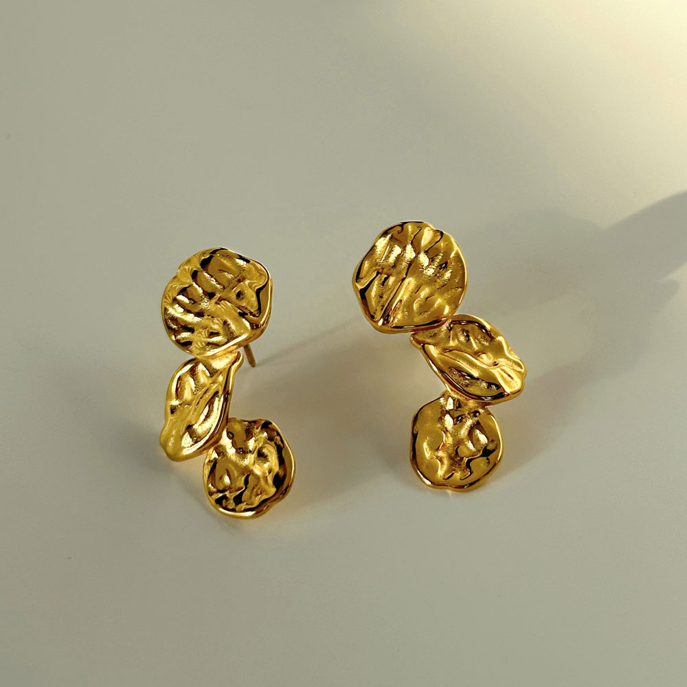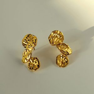 Εντυπωσιακά σκουλαρίκια από ανοξείδωτο ατσάλι με σφυρήλατες, οργανικές λεπτομέρειες που δημιουργούν ένα καλλιτεχνικό και σύγχρονο αποτέλεσμα. Ο ανάγλυφος σχεδιασμός τους χαρίζει ιδιαίτερη υφή και δυναμικό χαρακτήρα, ενώ το μήκος 3.5 cm τα καθιστά ιδανικά για statement εμφανίσεις χωρίς υπερβολή. Φοριούνται άνετα και συνδυάζονται εύκολα με minimal ή elegant looks, προσθέτοντας μοναδικό στυλ σε κάθε εμφάνιση.