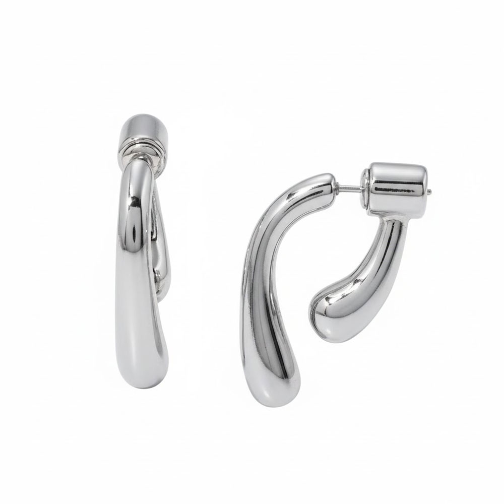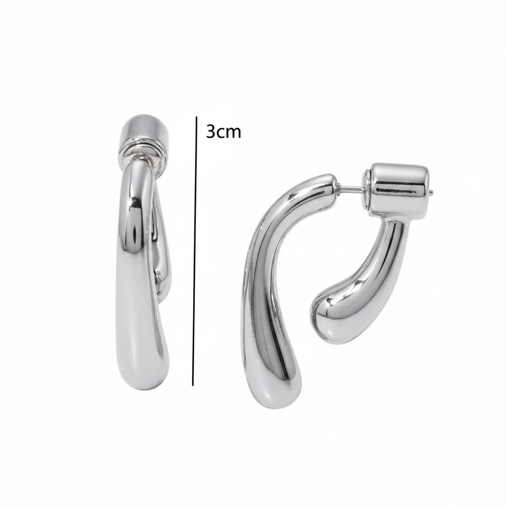Κομψά ατσάλινα σκουλαρίκια σε ασημί χρώμα με μοντέρνο κυματιστό σχέδιο τύπου σταγόνας, που αγκαλιάζει διακριτικά το αυτί και χαρίζει ιδιαίτερο χαρακτήρα σε κάθε εμφάνιση. Κατασκευασμένα από ανθεκτικό ανοξείδωτο ατσάλι, είναι ιδανικά για καθημερινή χρήση αλλά και για πιο προσεγμένες εμφανίσεις, προσφέροντας διαχρονικό στυλ και άνετη εφαρμογή. Ύψος περίπου 3 εκ.