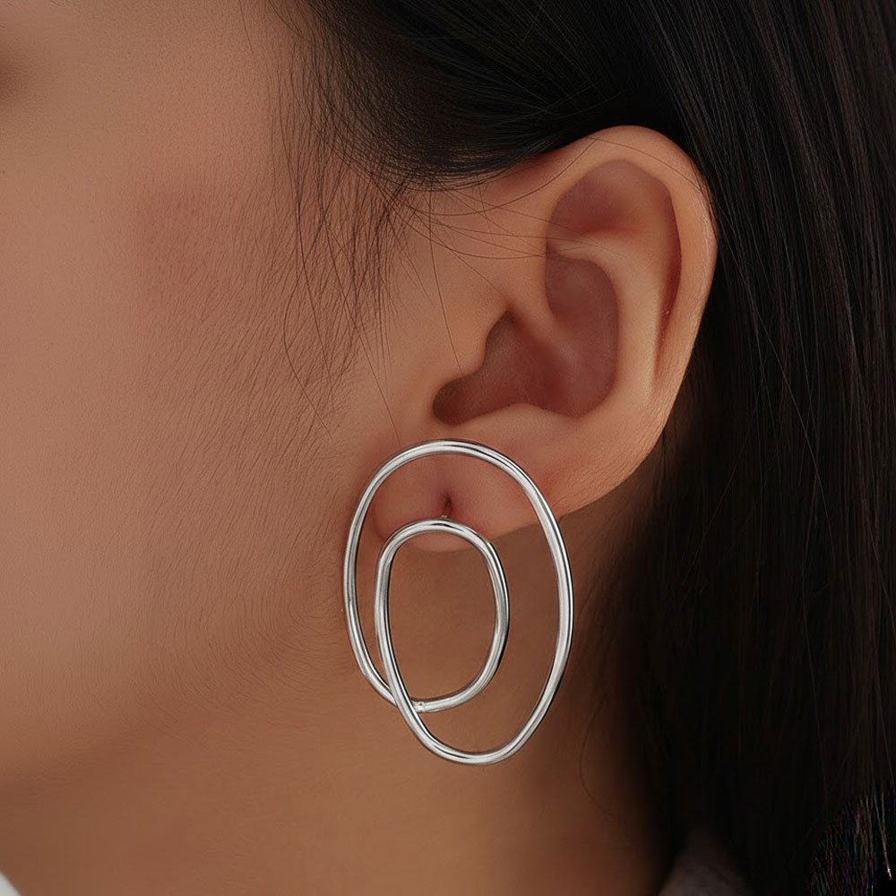 Μοντέρνα σκουλαρίκια με διπλό οβάλ σχεδιασμό από ατσάλι, που προσφέρουν minimal αλλά εντυπωσιακή αισθητική. Η ιδιαίτερη γεωμετρική τους φόρμα δίνει ένα κομψό, αρχιτεκτονικό ύφος και τα καθιστά ιδανική επιλογή για όσες αγαπούν τα statement κοσμήματα με καθαρές γραμμές.Ανθεκτικά, ελαφριά και άνετα στη χρήση, ολοκληρώνουν κάθε εμφάνιση με μια σύγχρονη και εκλεπτυσμένη πινελιά.