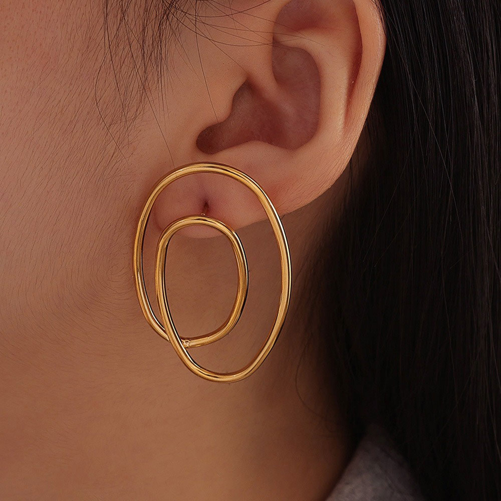 Μοντέρνα σκουλαρίκια με διπλό οβάλ σχεδιασμό από ατσάλι, που προσφέρουν minimal αλλά εντυπωσιακή αισθητική. Η ιδιαίτερη γεωμετρική τους φόρμα δίνει ένα κομψό, αρχιτεκτονικό ύφος και τα καθιστά ιδανική επιλογή για όσες αγαπούν τα statement κοσμήματα με καθαρές γραμμές.Ανθεκτικά, ελαφριά και άνετα στη χρήση, ολοκληρώνουν κάθε εμφάνιση με μια σύγχρονη και εκλεπτυσμένη πινελιά.